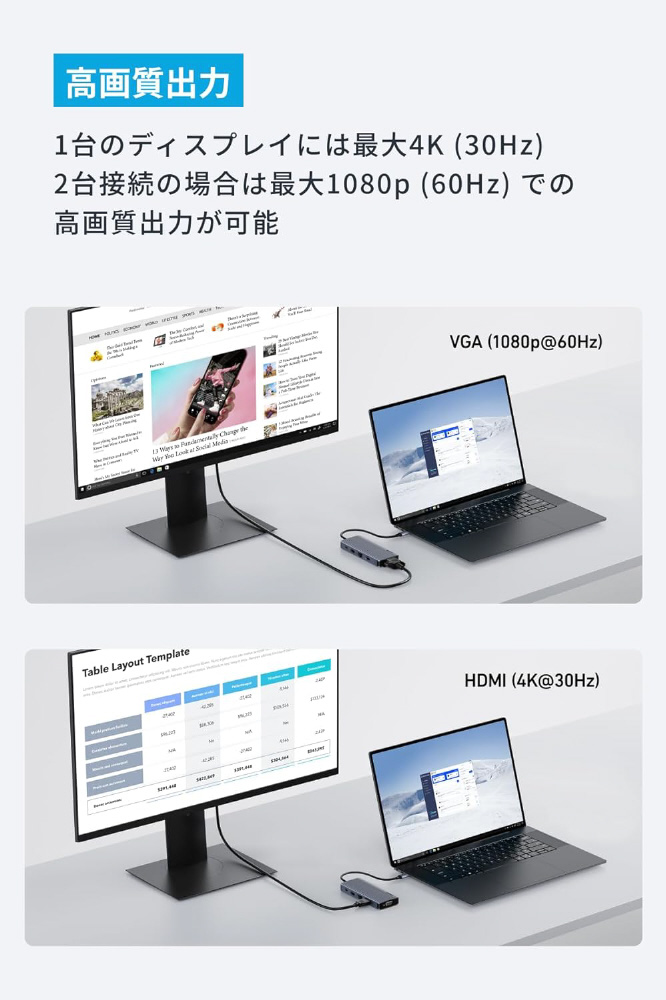 10個のポートを搭載し、複数画面出力も可能なUSB-C データ ハブ