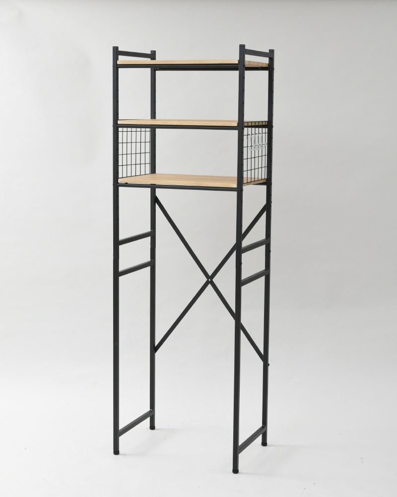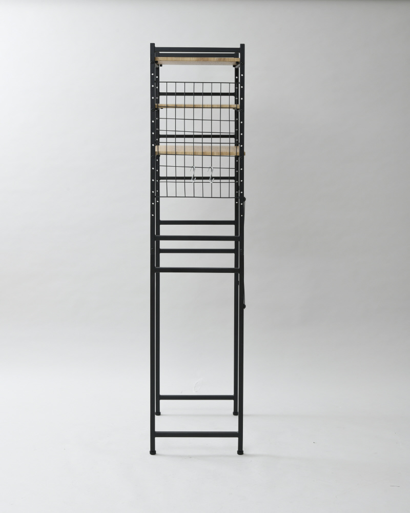 高さ調節可能な棚板3枚と、便利なメッシュパネル付き。