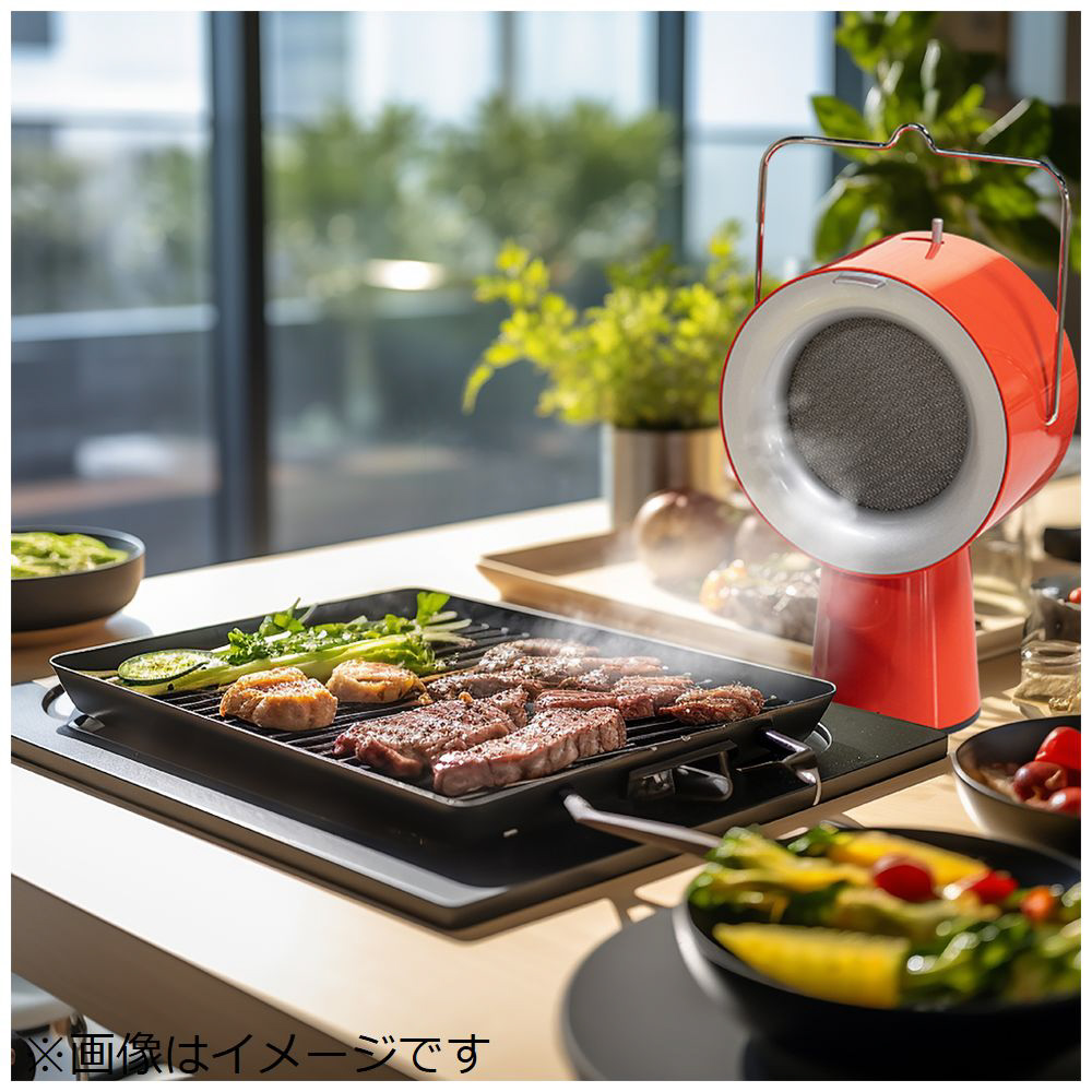 お家の中でホットプレートを使用し、焼肉やお好み焼きや、調理中に発生するニオイ・煙・油ハネを吸い込んでくれて、テーブル、床のぬるぬるを軽減できます。簡単に持ち運べるレンジフード(換気扇)です。