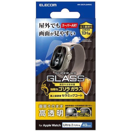エッチングAR加工により透過率をアップ。動画視聴の際などに光の映り込みに邪魔されずに視聴することができるGorilla(R)ガラスを採用した超高透明タイプのApple Watch用ガラスフィルムです。