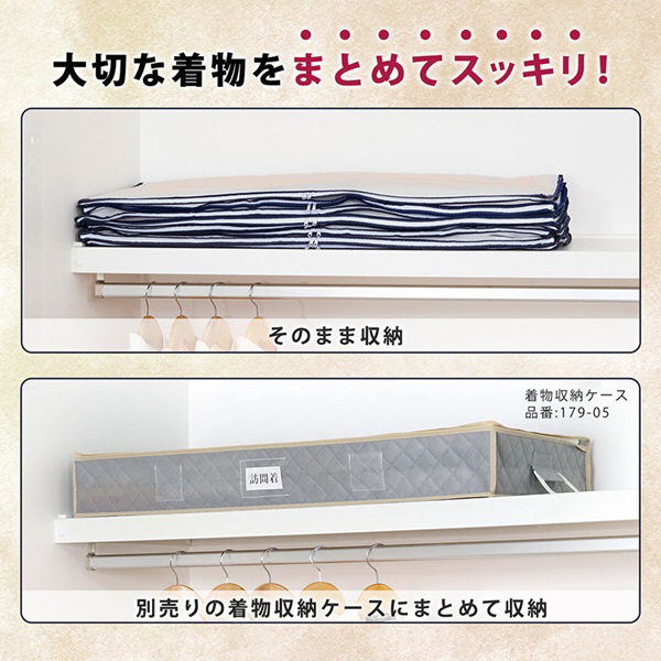 湿気やにおいのこもりにくい通気性の良い不織布製。大切な着物をホコリから守り保管できる。