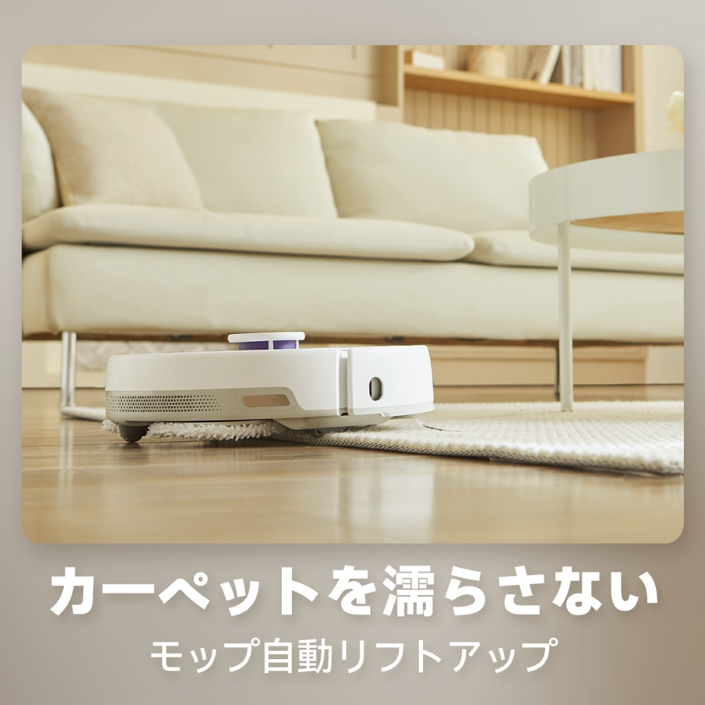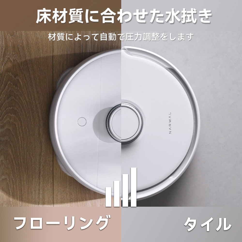 他にも「掃除から水拭き」「掃除&水拭き同時」「掃除のみ」「水拭きのみ」4つのモードも搭載しているので環境に合わせて好みのモードで細かい調整も可能。