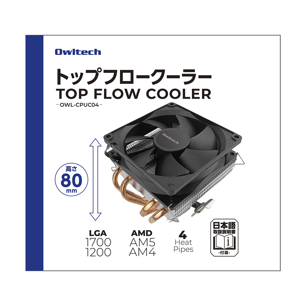 マルチソケット対応ブラケット採用 ツールレス設計 全高80mm トップフロー型 空冷CPUクーラー
