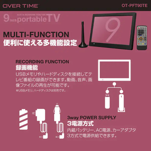 | 商品名 | 録画機能付きポータブルテレビ OT-PFT90TE [9V型] |