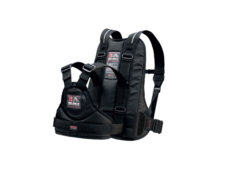 両肩・肩甲骨周り・両脇を包み込むようにサポートする同乗者側のベルトとバックプレートは、座席からの脱落を防ぎ「立ちゴケ」の際にもスムーズな脱出補助の効果を発揮します。