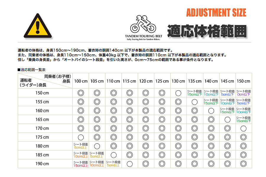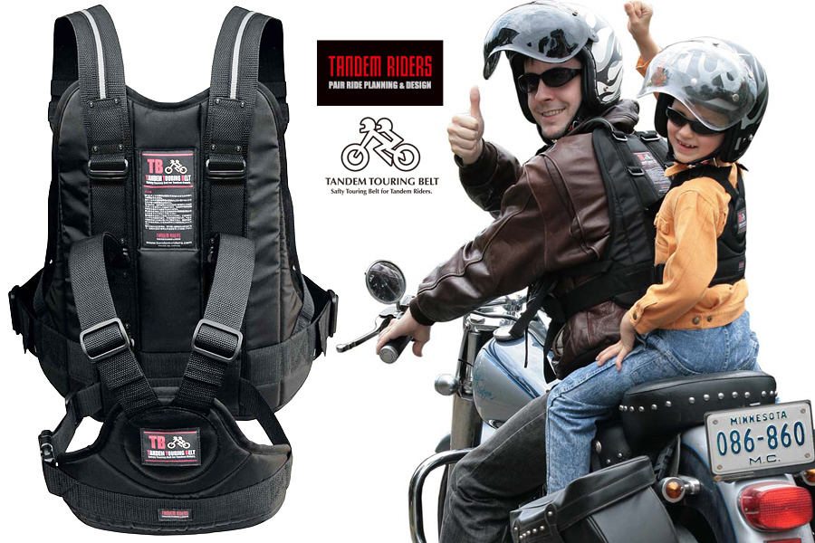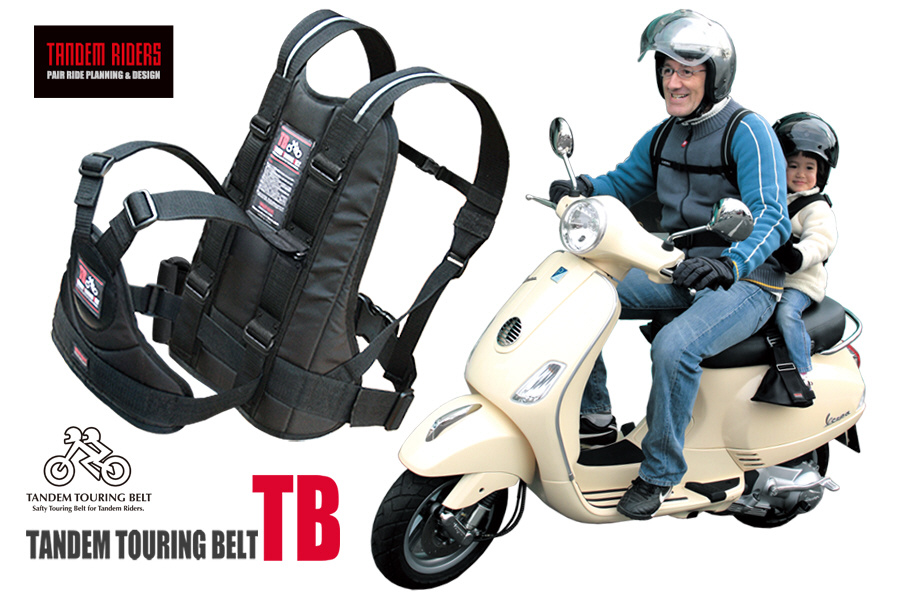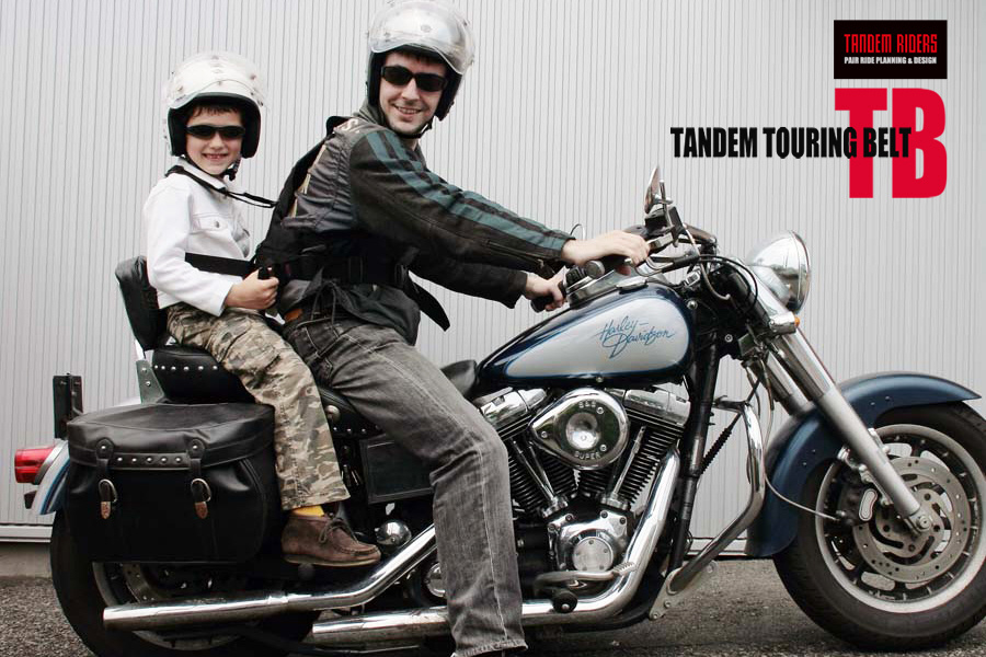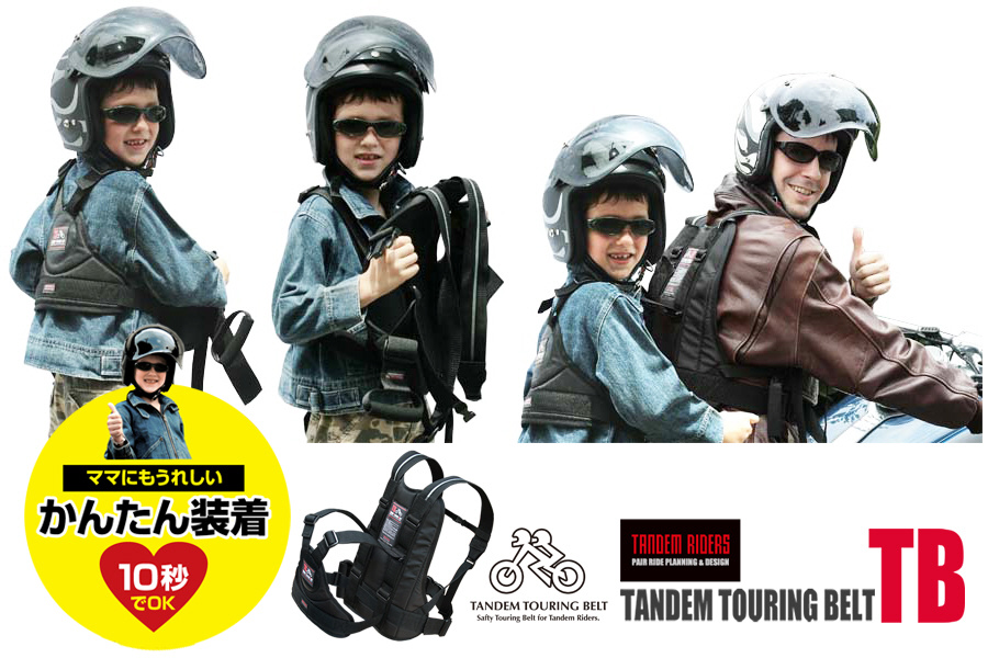 タンデムツーリングベルトTBは、同乗者を保持するベルトを運転者用ベルトとは別に独立させる方式を採用した、新しいスタイルのタンデムベルトです。