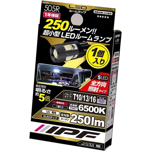 | 商品名 | 505R ルームランプ用LEDバルブ 6500K 12V1.2W 250lm T10/13/16 1個入り 505R |