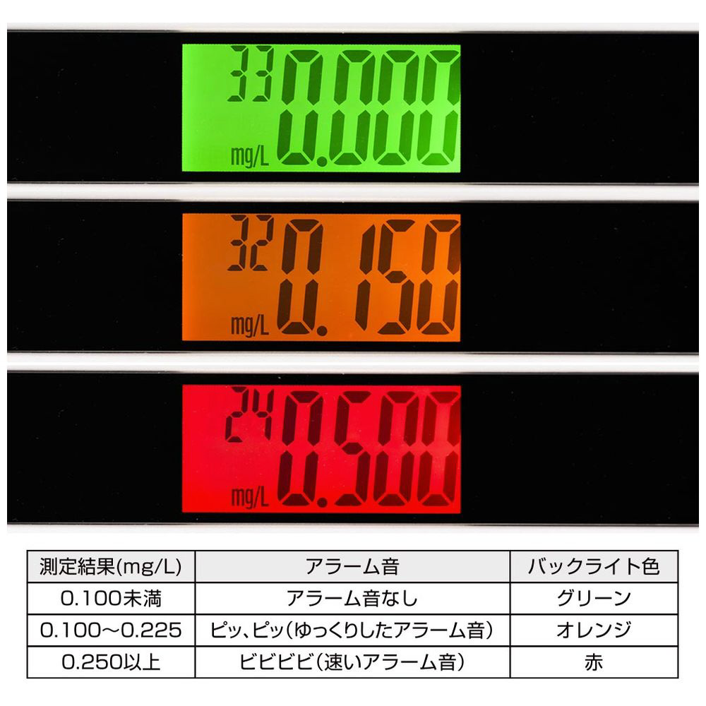 ・赤…0.250mg/L以上(速いアラーム音「ピピピピ」)