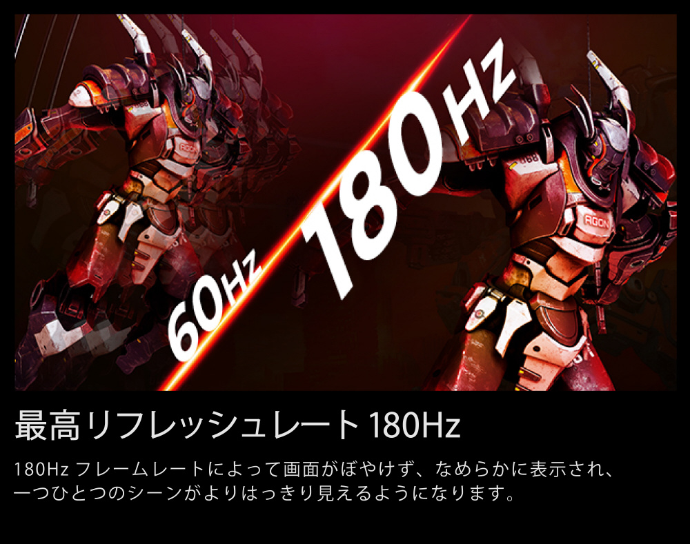 最大リフレッシュレート:180Hz