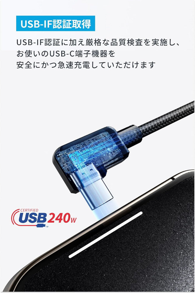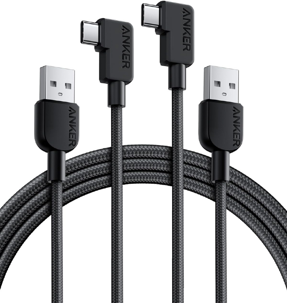 Anker USB-C & USB-A ケーブル (L字、高耐久ナイロン) 1.8m 2本セット ブラック B81J6011