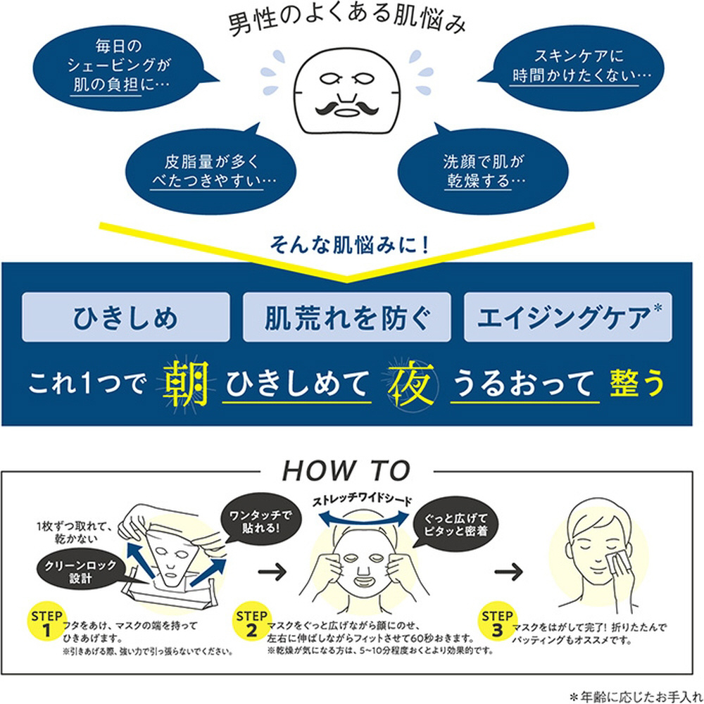 おやすみ前の肌に貼るだけで、夜のお手入れが1分*1で完了する夜用シートマスク。
