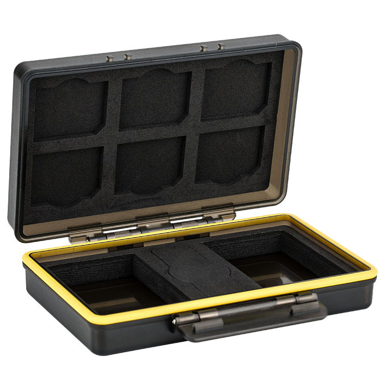 耐衝撃、防塵性に優れたメモリーカード&バッテリーケース。SDカード6枚/バッテリー2本が収納可能。