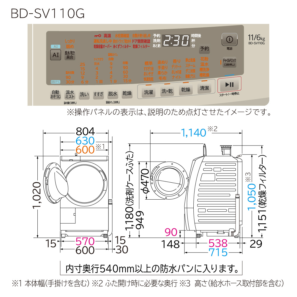 ドラム式洗濯乾燥機 BD-SV110GL-W [洗濯11.0kg /乾燥6.0kg /ヒーター乾燥(水冷・除湿タイプ) /左開き]【生産完了品】