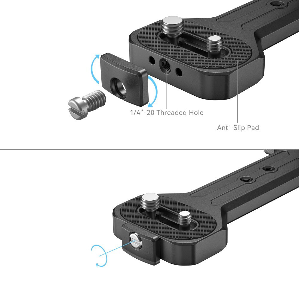 1/4”-20または3/8”-16のネジでジンバルの底面に接続し、スタビライザーの左側または右側に取り付けることができます。