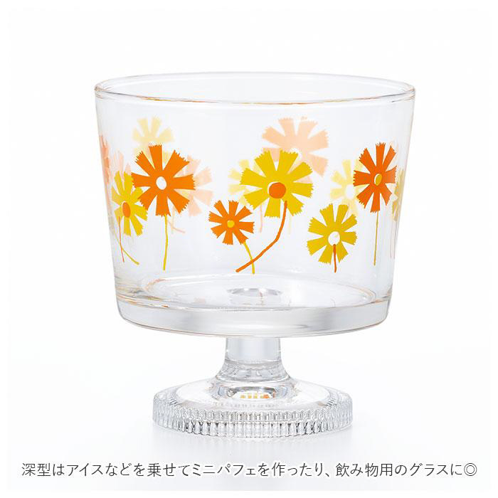 ■深型はアイスなどを乗せてミニパフェを作ったり、飲み物用のグラスとして、浅型はプリンやケーキを乗せるのにぴったり。