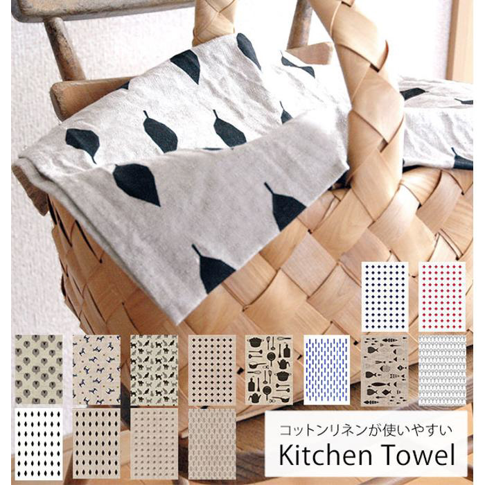 使うほど暮らしに馴染むキッチンタオル♪綿麻混合で乾くのが早く丈夫な作り! 布巾、台拭き、手ぬぐい、キッチンマットと色々使えて便利です。