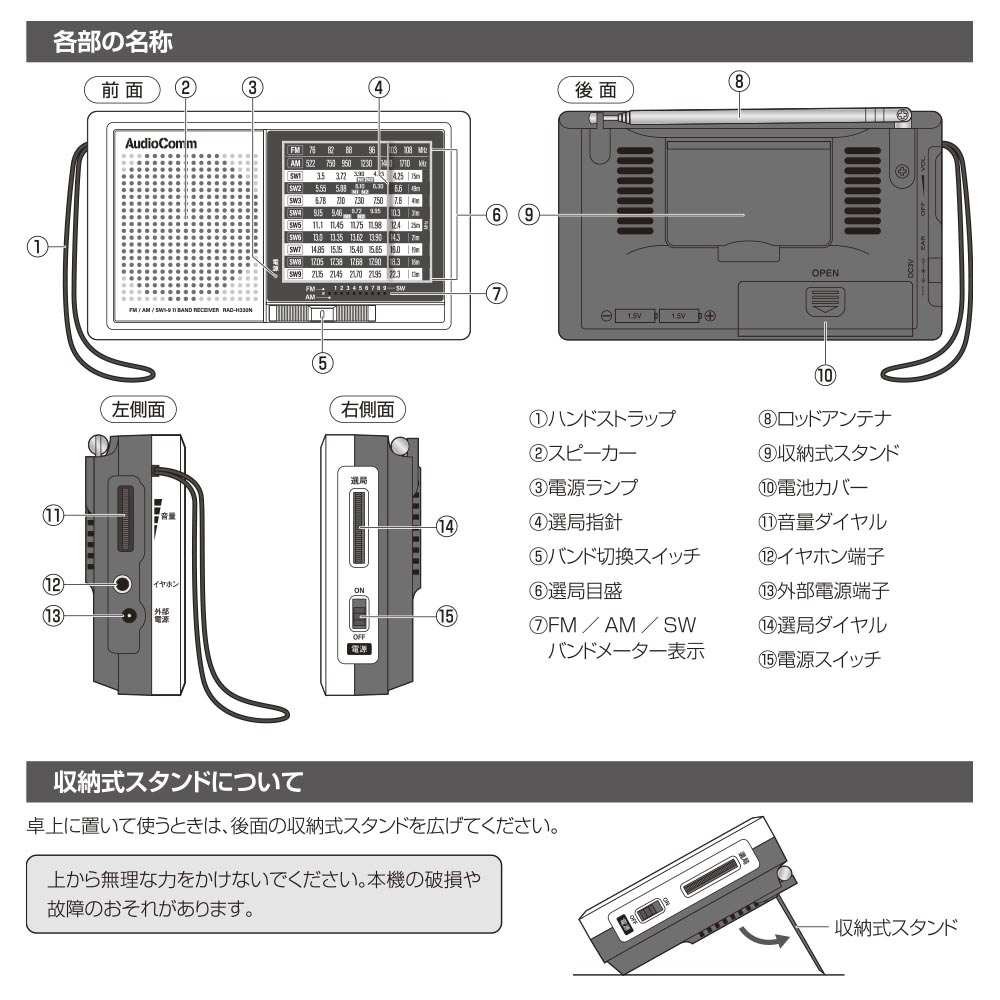 ■ アンテナ:AM…内蔵フェライトバーアンテナ、FM・SW…ロッドアンテナ