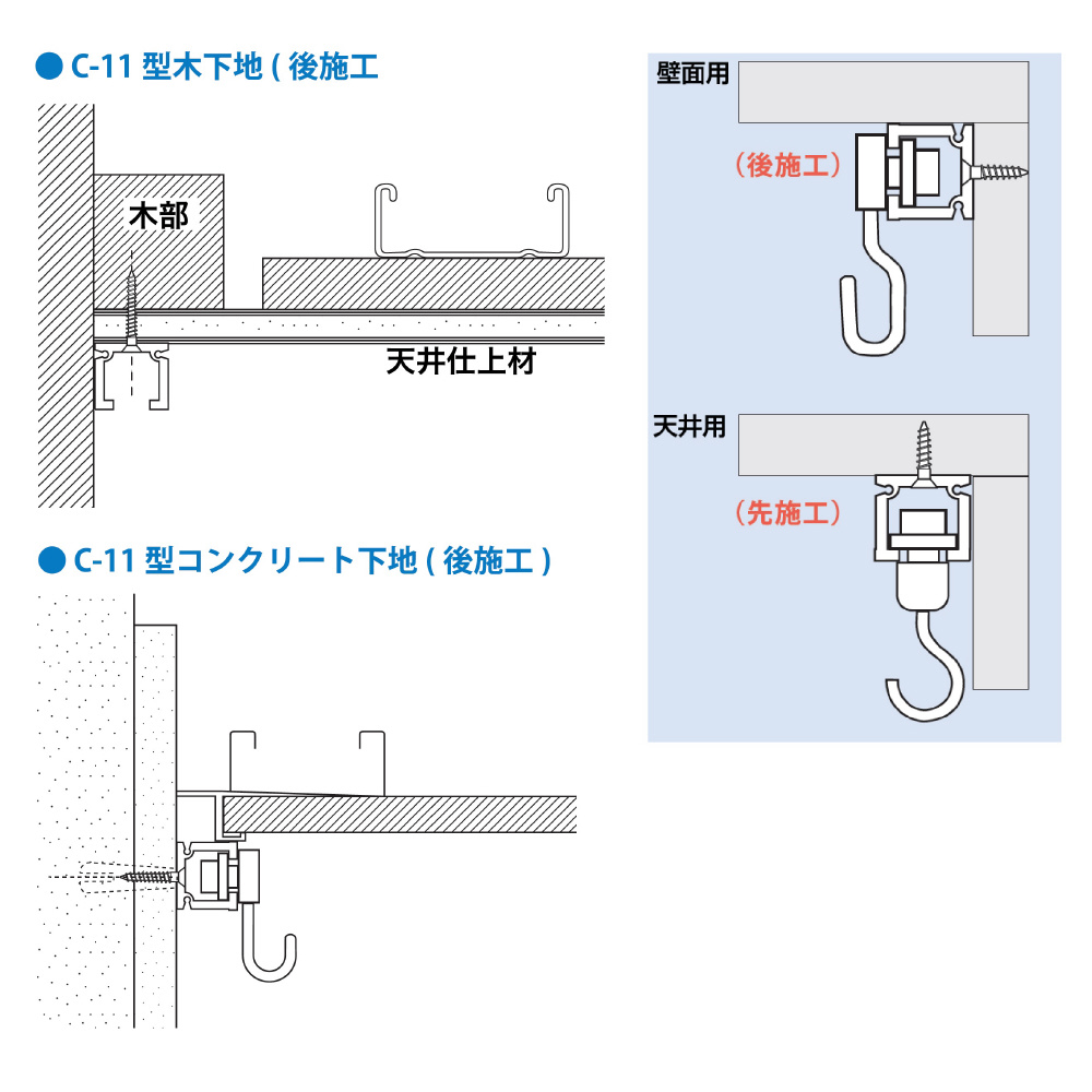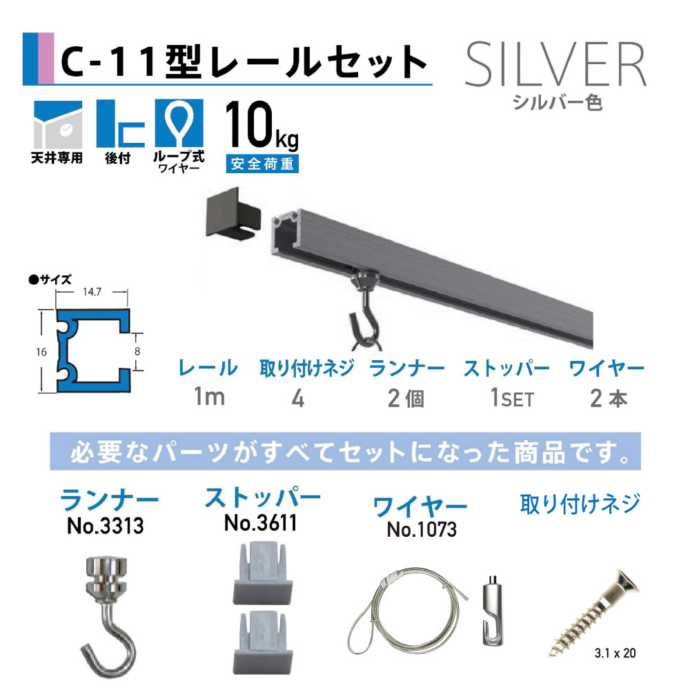 商品名 福井金属工芸 C−11型ピクチャーレールセット 1.0m シルバー 天井用 3353−1
