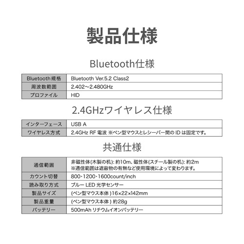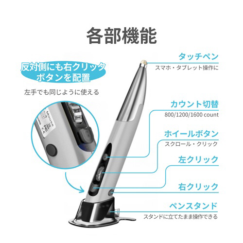 ペンを持つようにしてマウス操作できるペン型ワイヤレスマウス。