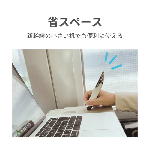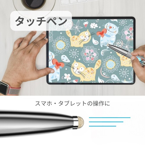 スマートフォン・タブレットなどを操作できる導電性繊維のタッチペン機能と収納に便利な専用スタンド付きです。
