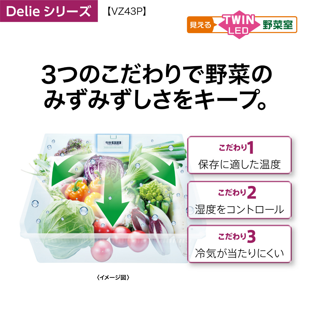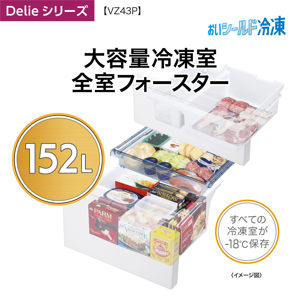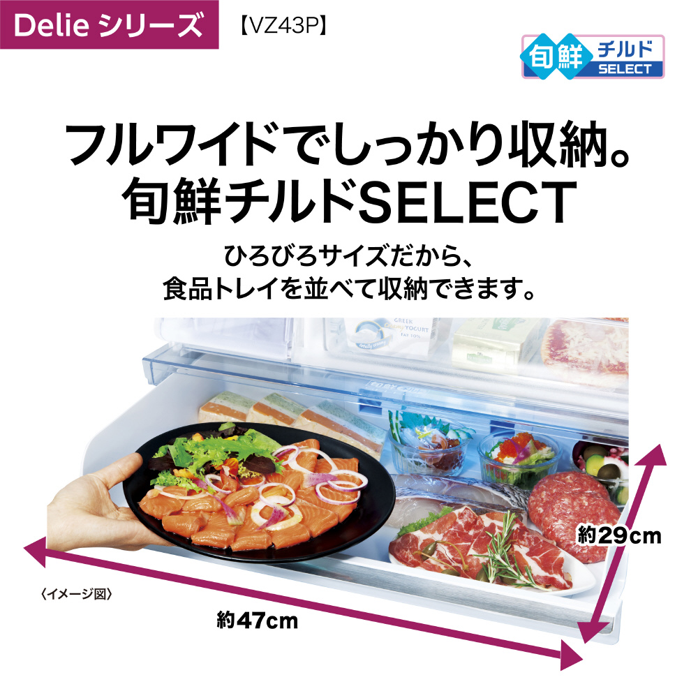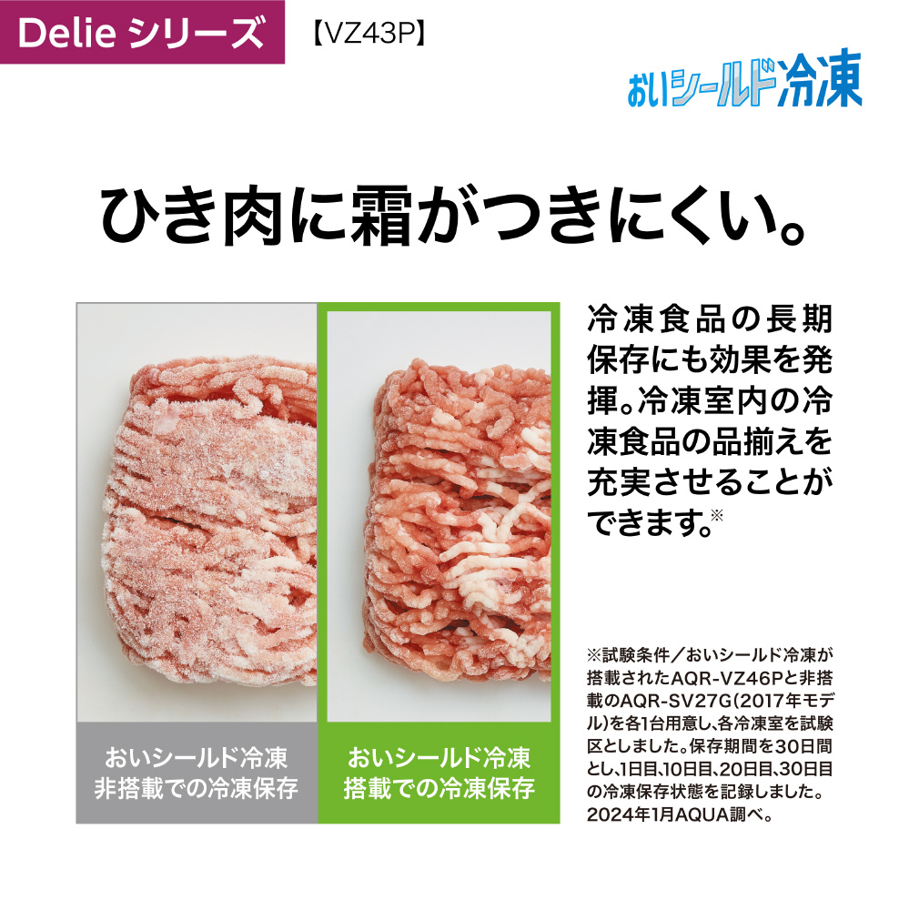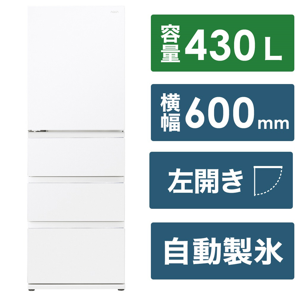 冷蔵庫 Delie クリアウォームホワイト AQR-VZ43PL(W) [幅60cm /430L /4ドア /左開きタイプ /2024年] 【基本設置料金セット】