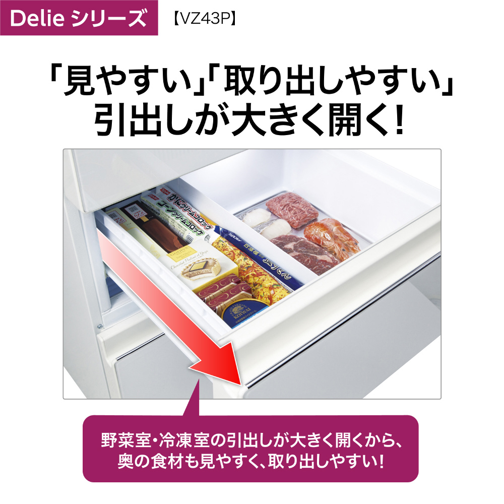 ・60cm幅スリムで上まで届きやすいローボディ430L&全室LED搭載