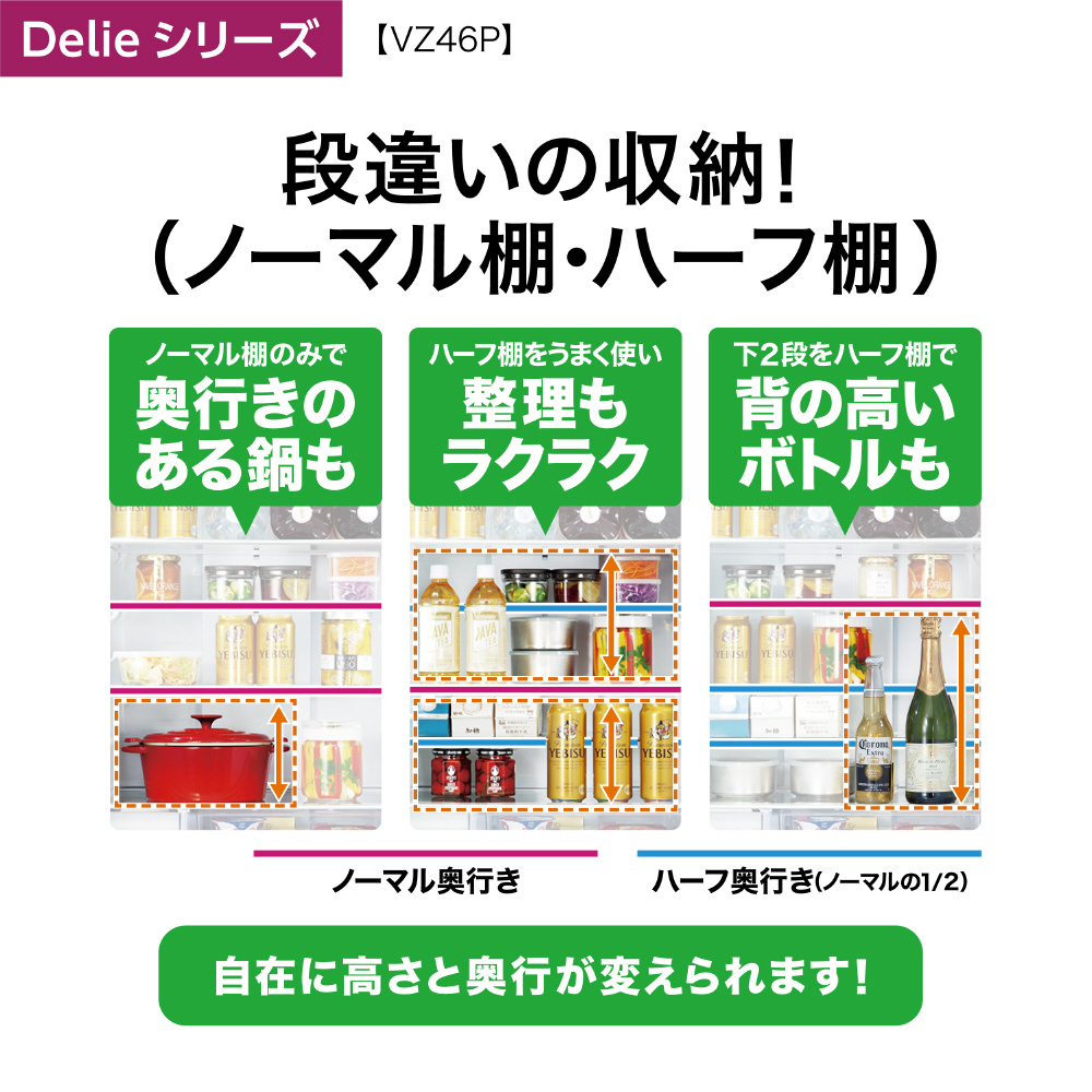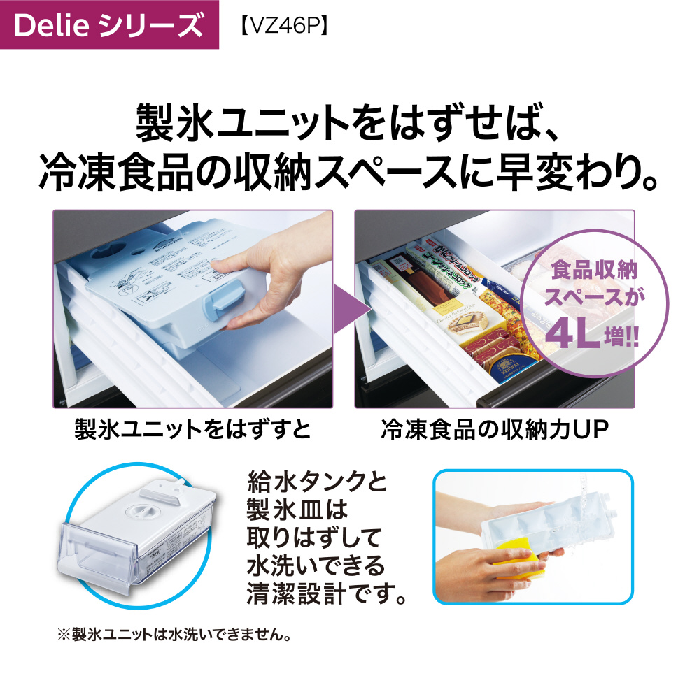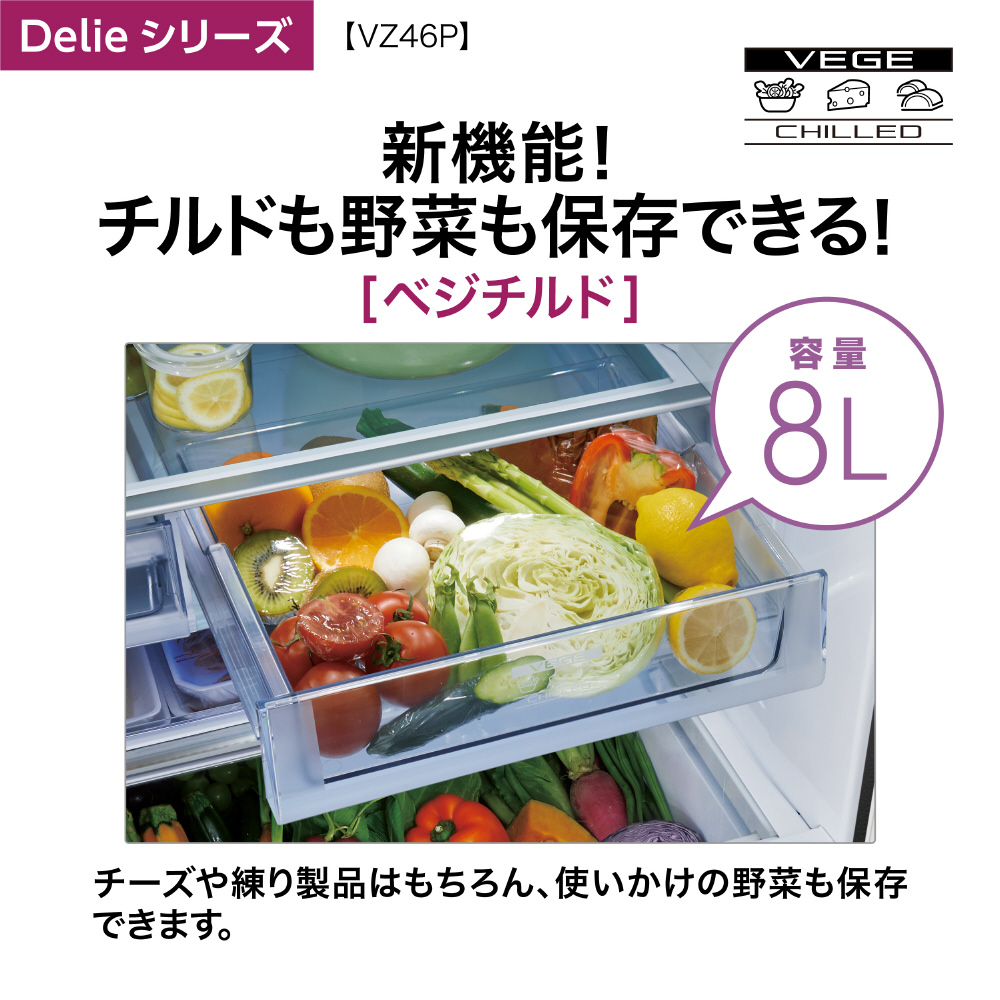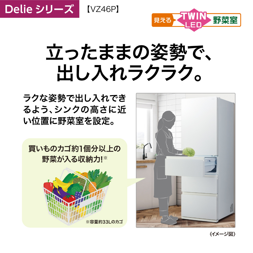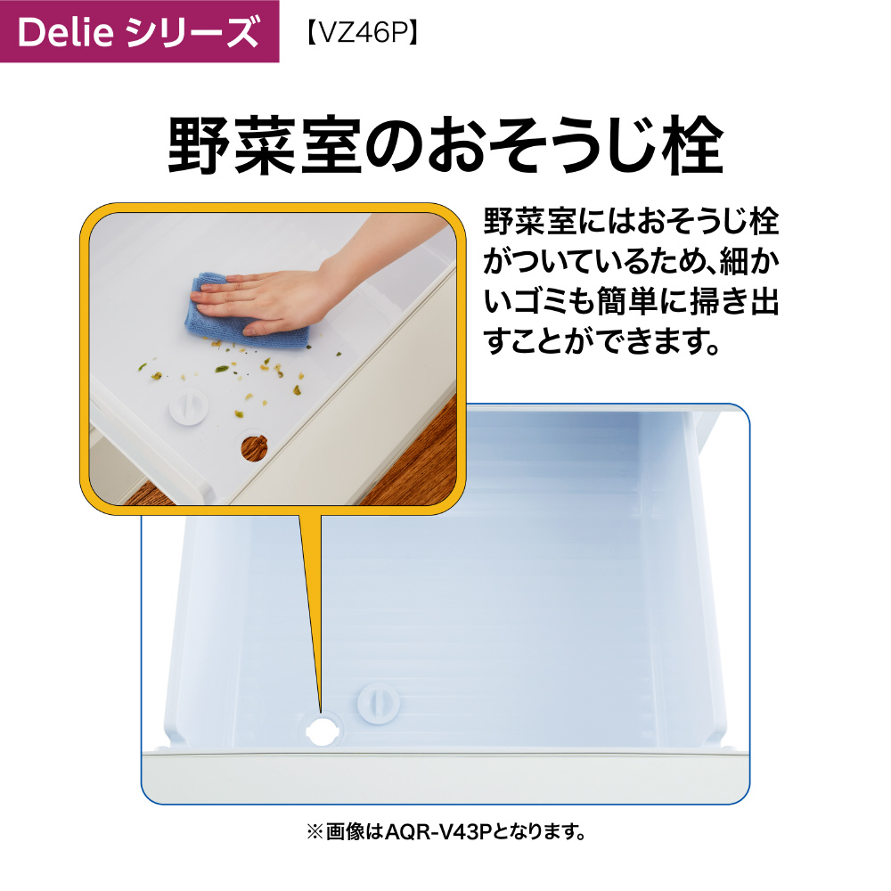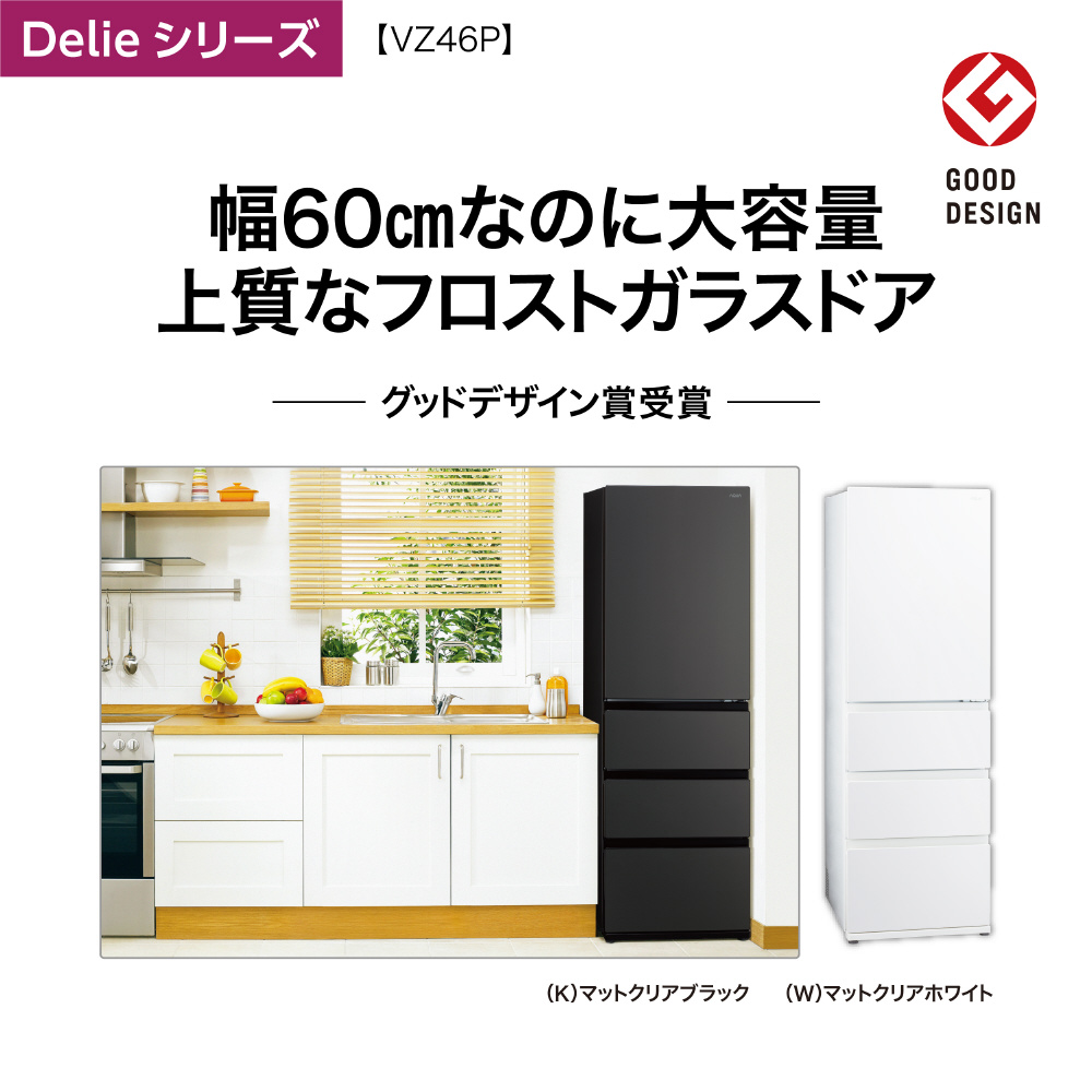 | 商品名 | 冷蔵庫 Delie マットクリアホワイト AQR-VZ46P(W) [幅60cm /458L /4ドア /右開きタイプ /2024年] |