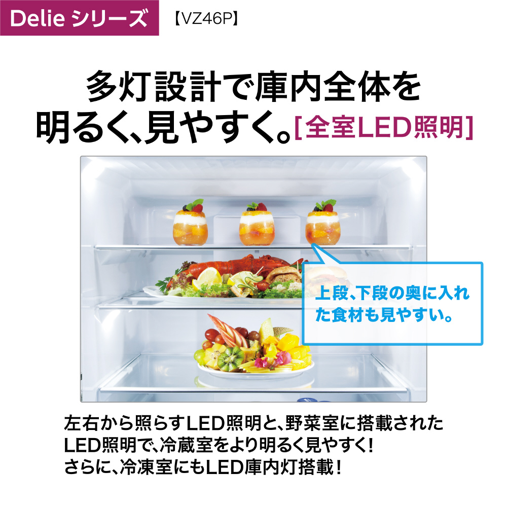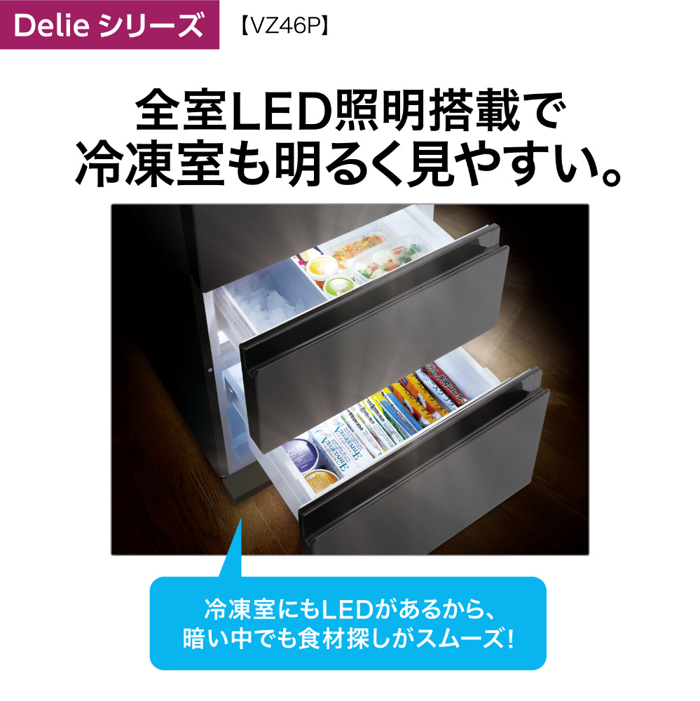 ・60cm幅スリムボディでも458L大容量&全室LED搭載