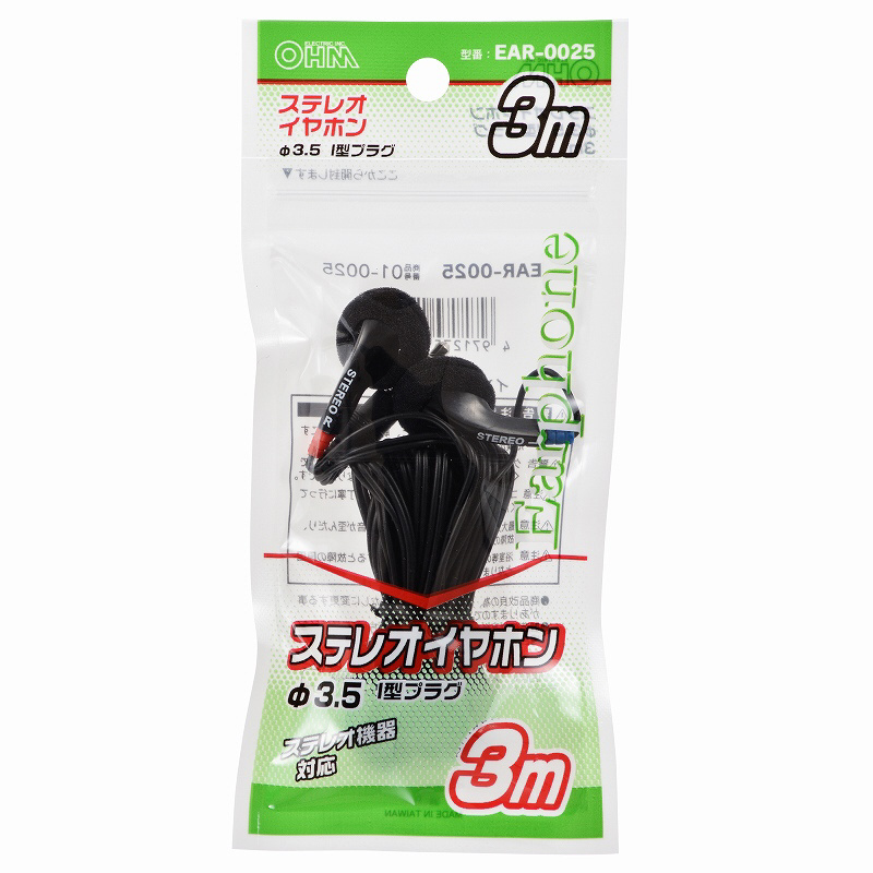 3m ステレオイヤホン EAR-0025 [φ3.5mm ミニプラグ]