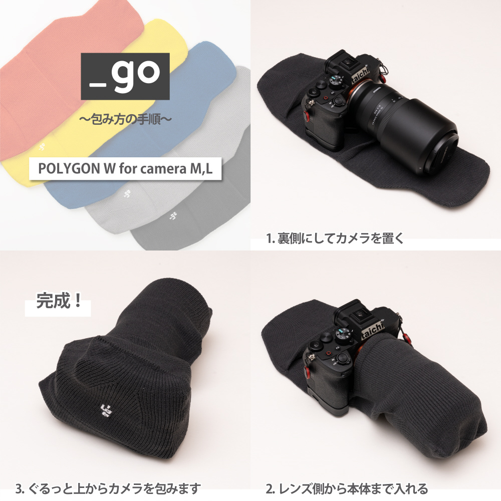 フルサイズの一眼レフカメラ+レンズに対応した特別仕様の_go(アンドゴー)、「_go polygon W for camera L」