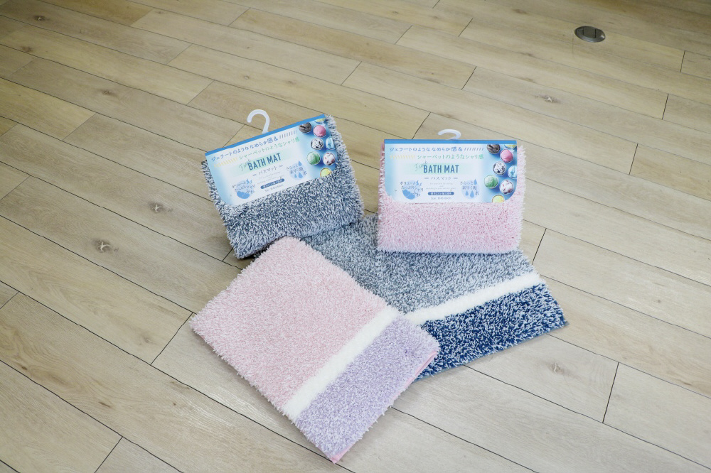 シャリっとふんわり心地良い。吸水性に優れたバスマット。裏面は通気性の良いメッシュ生地なので、乾きも早く衛生的です。