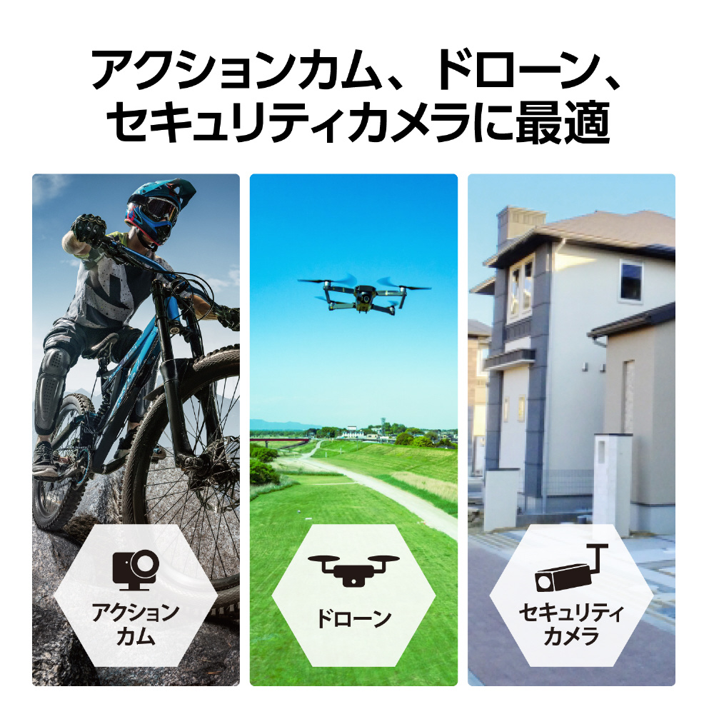 アクションカム、ドローン、セキュリティカメラでの使用に適しています。