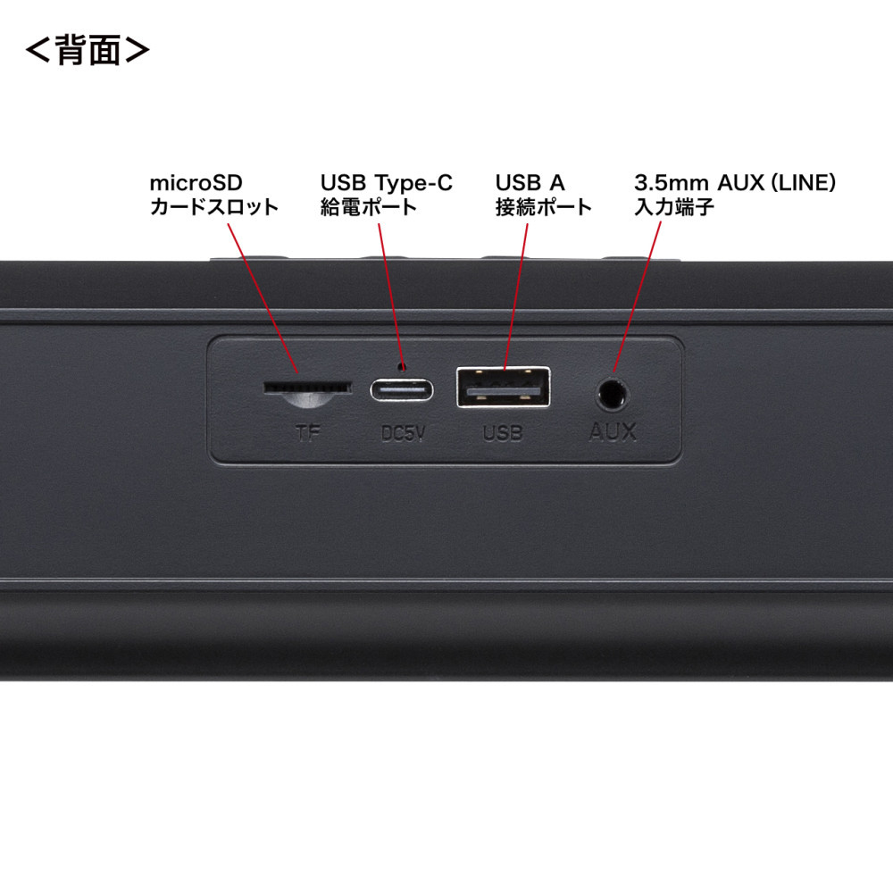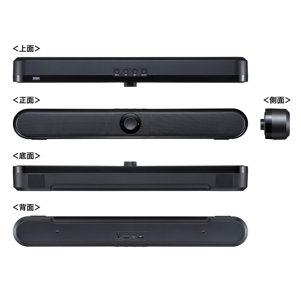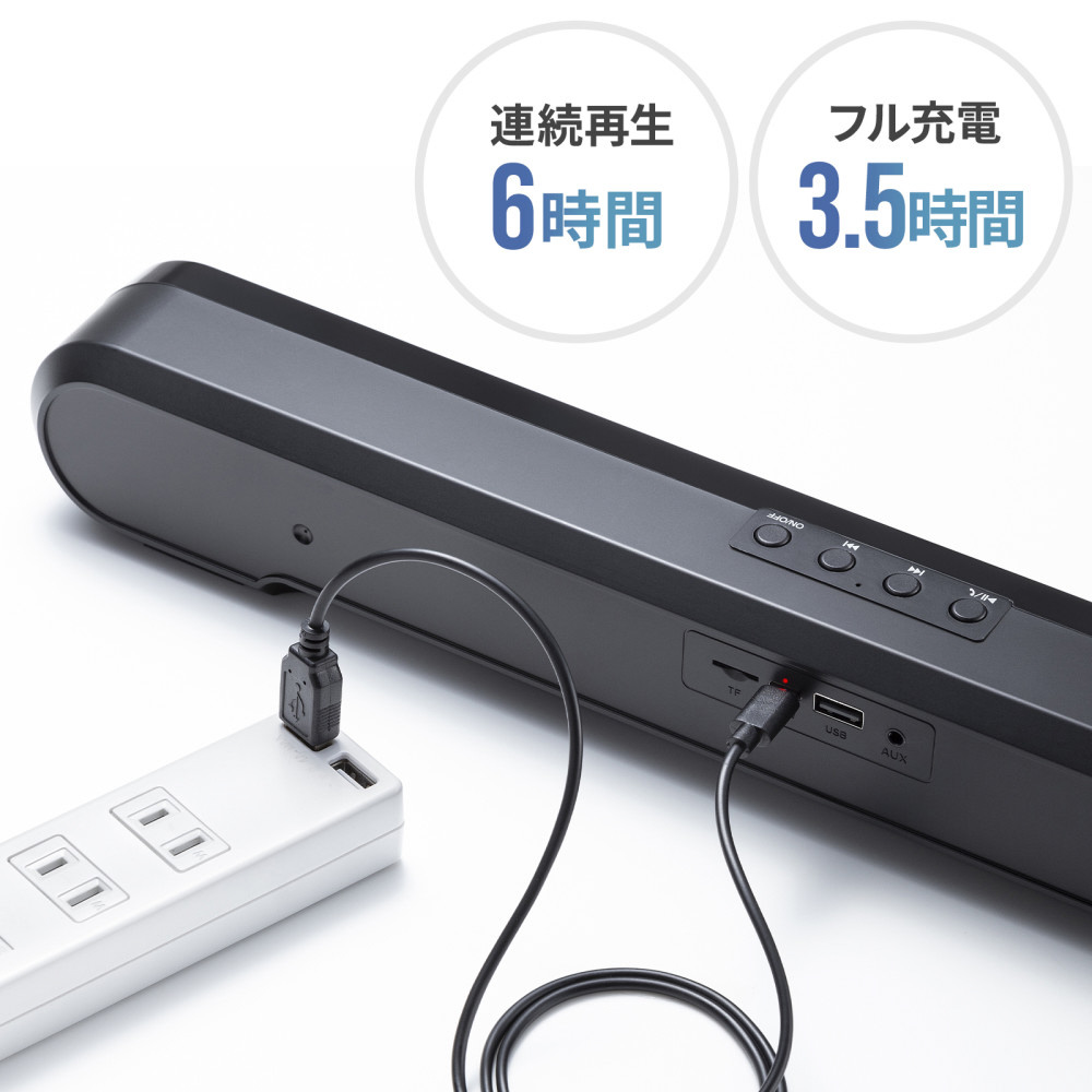 | 商品名 | MM-SPSBA4 サウンドバースピーカー Bluetooth/3.5mm接続 [USB電源] |