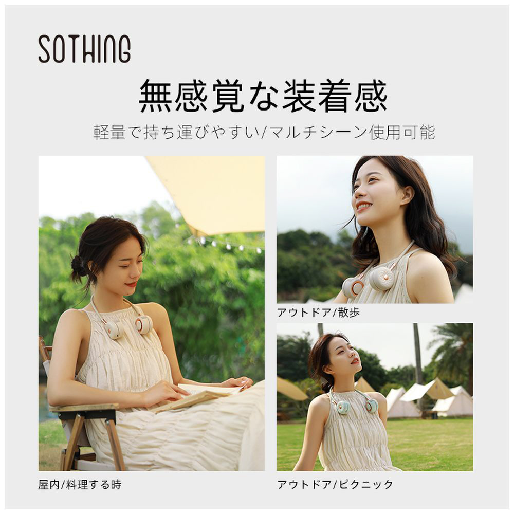 ハンズフリーの首掛け冷風扇、自由な方向調節が可能。