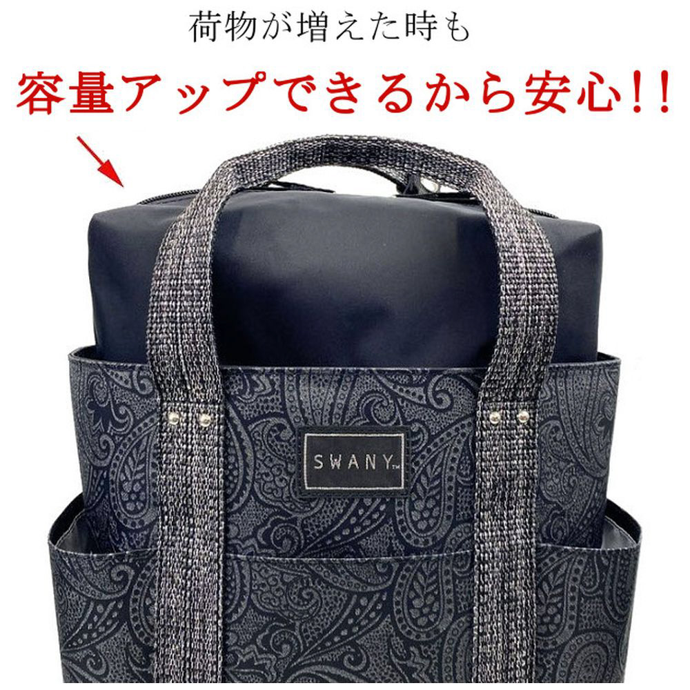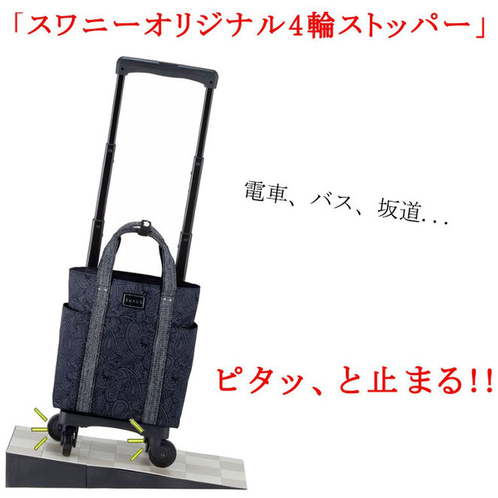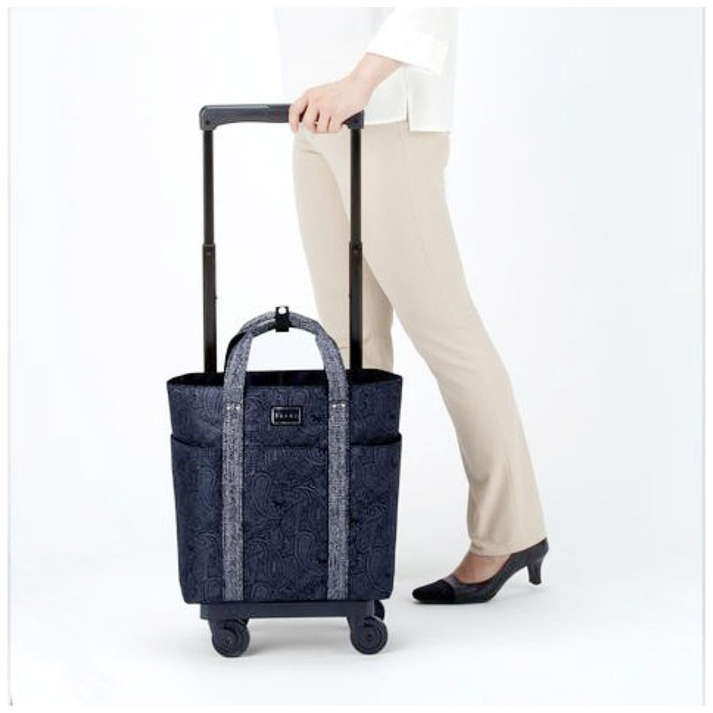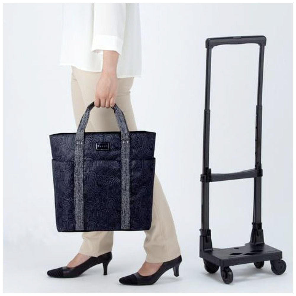 大き目ペイズリー柄と持ち手テープがポイントのトート型お買い物キャリーです。