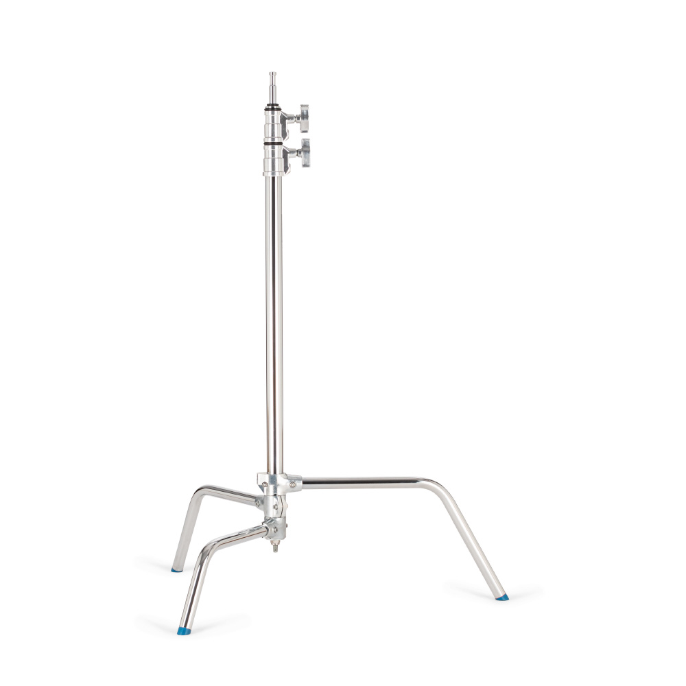 3段2ライザー構成のスチール製タートルベーススタンドです。脚は平らに折りたたむことができ、収納に便利です。最大10kgの機材を保持することができ、2.53mの高さまで伸ばすことが可能です。クロームメッキスチール製もご用意しています。