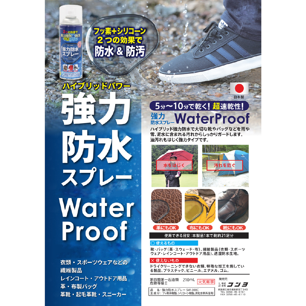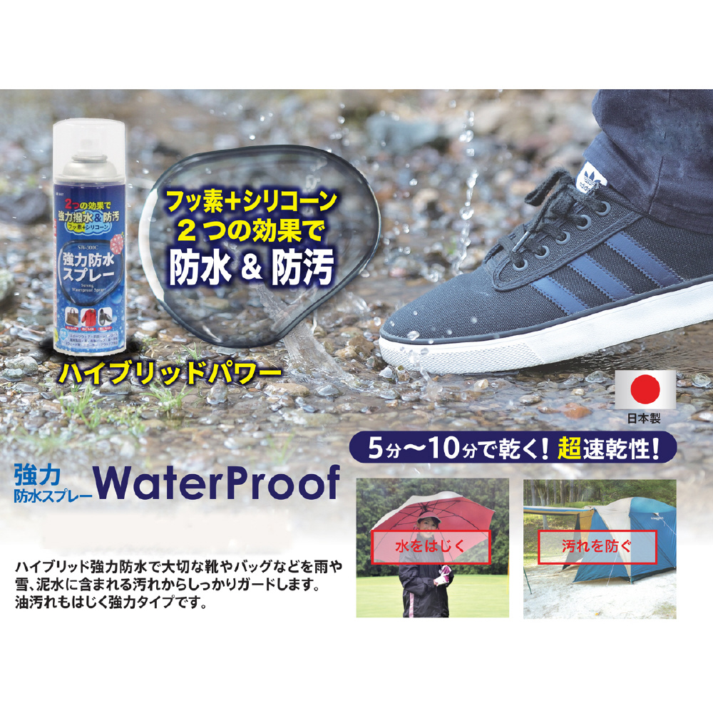 強力な撥水力で大切な靴・バッグ・衣類・アウトドア用品などを雨や雪をガードし、