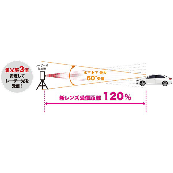 新設計のフレデリックスレンズとセルスター社独自のシステム※を合わせることで、赤外線やレーザー光を使用した機器など誤警報となりやすい受信とレーザー式オービスからのレーザー受信を高い確率で識別することが可能になりました。