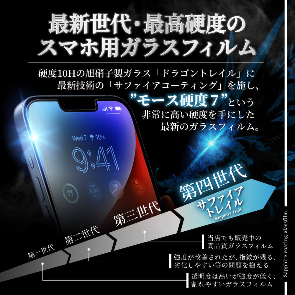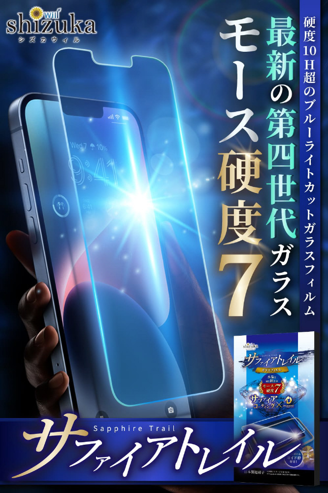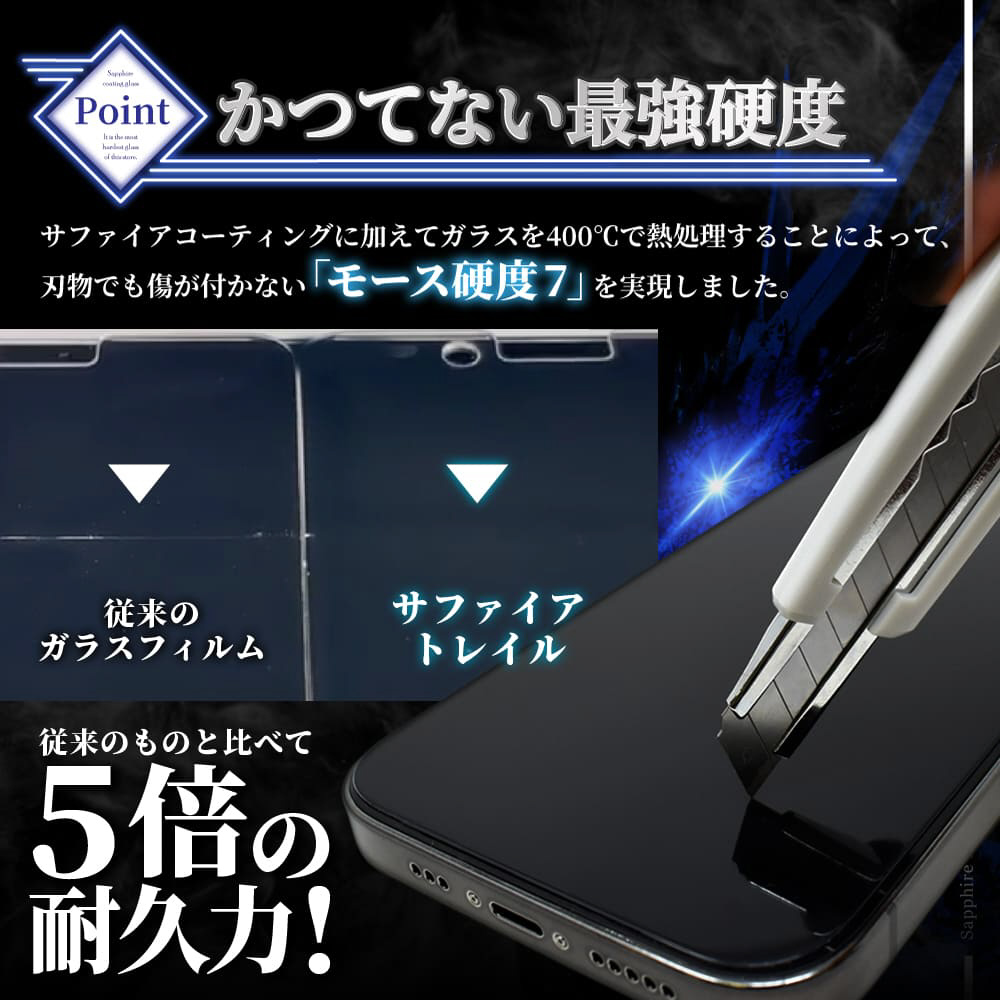サファイアコーティングで硬度10Hを超える!モース硬度7 サファイアトレイル!ガイド枠付きブルーライトカット処理により長時間でも目に優しい