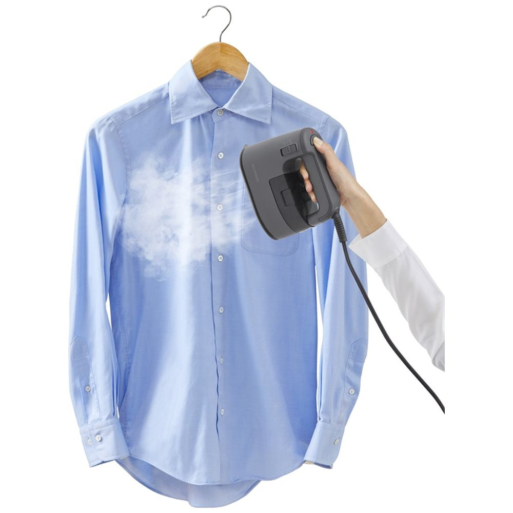 ■衣類をハンガーにかけたまま手軽にシワとりができる衣類用スチーマーです。