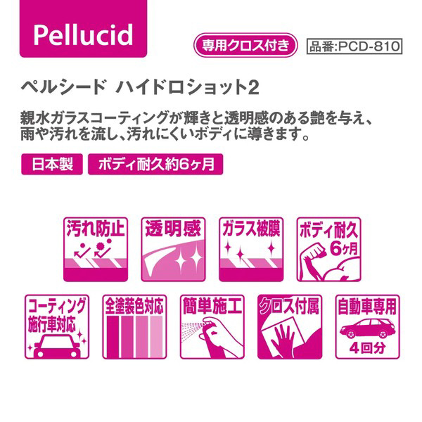 PCD810 洗車ケミカル 親水ガラスコーティング剤 ハイドロショット2 親水タイプ 内容量:210ml PCD-810