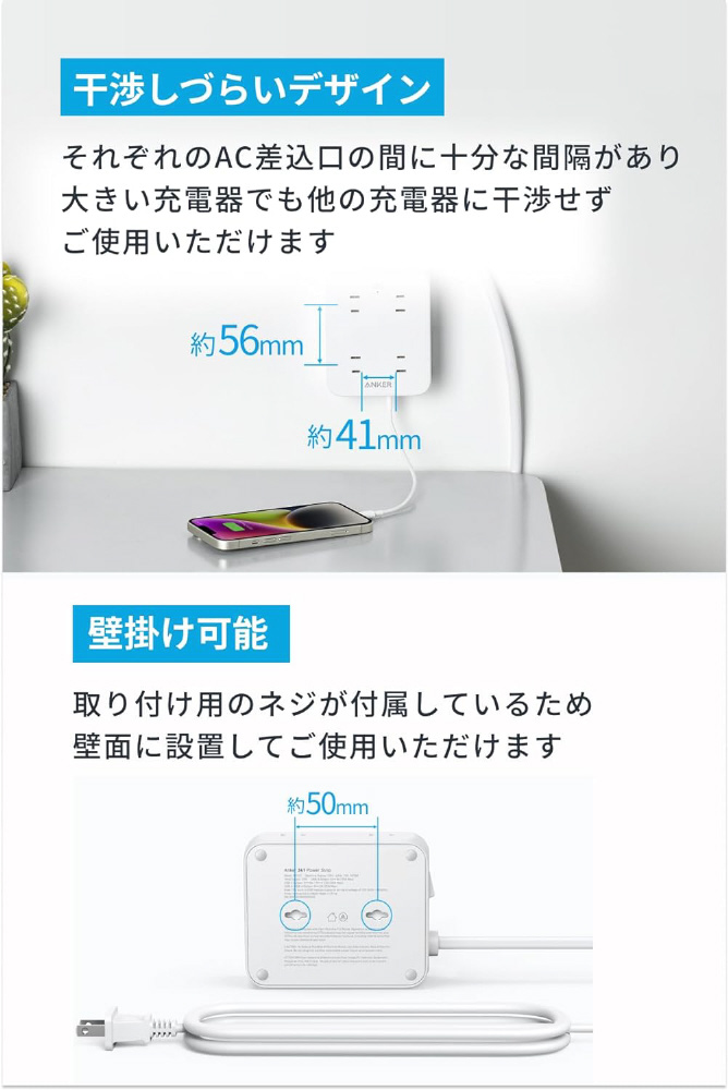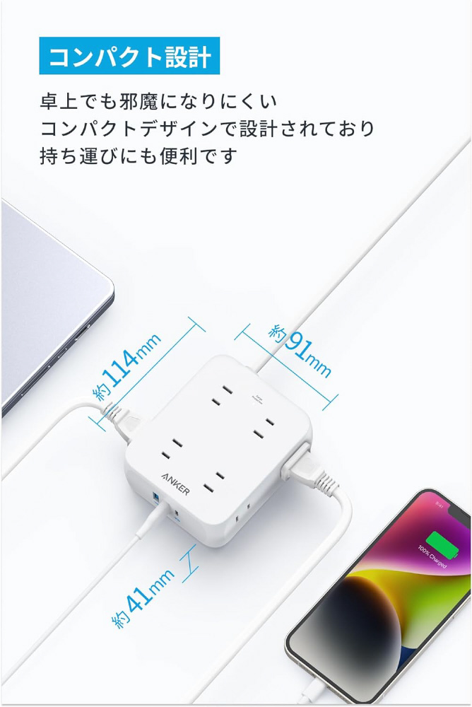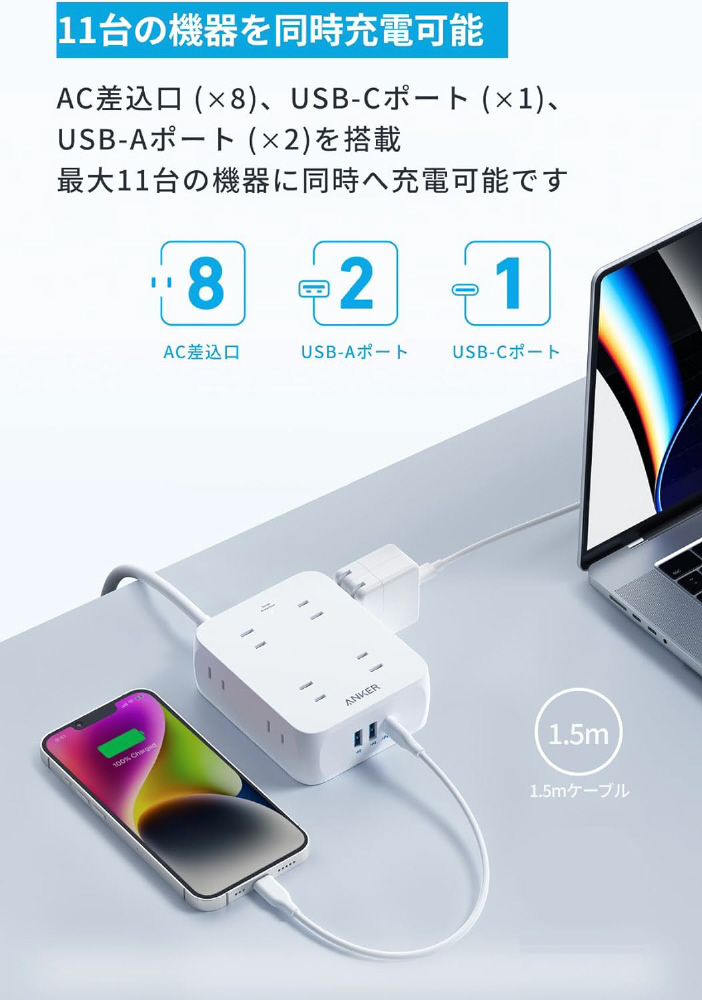 電源タップ Anker USB Power Strip (11-in-1) ホワイト A9183522 [3ポート /USB Power Delivery対応]