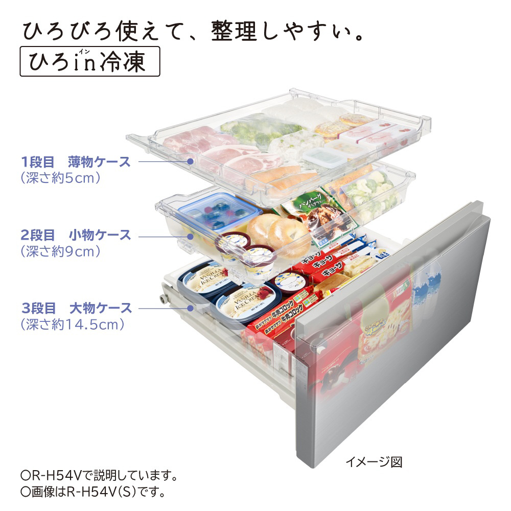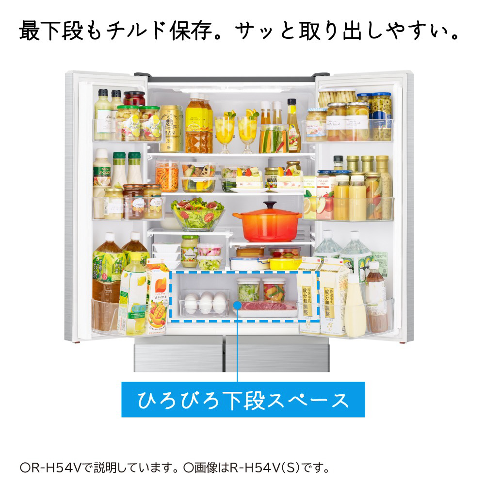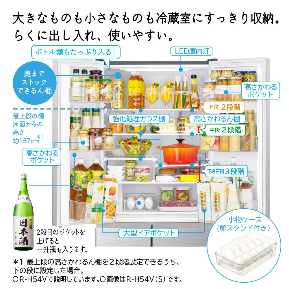 | 商品名 | 冷蔵庫 Hタイプ シルバー R-H54V-S [幅65cm /540L /6ドア /観音開きタイプ /2024年] 【基本設置料金セット】 |
