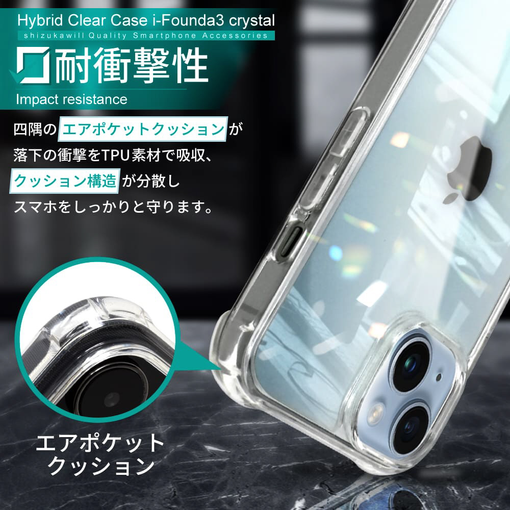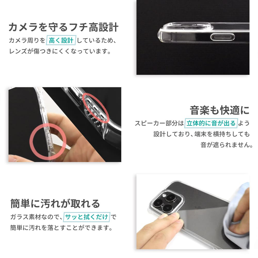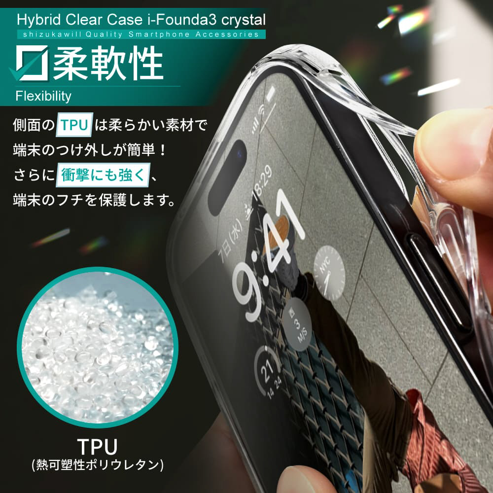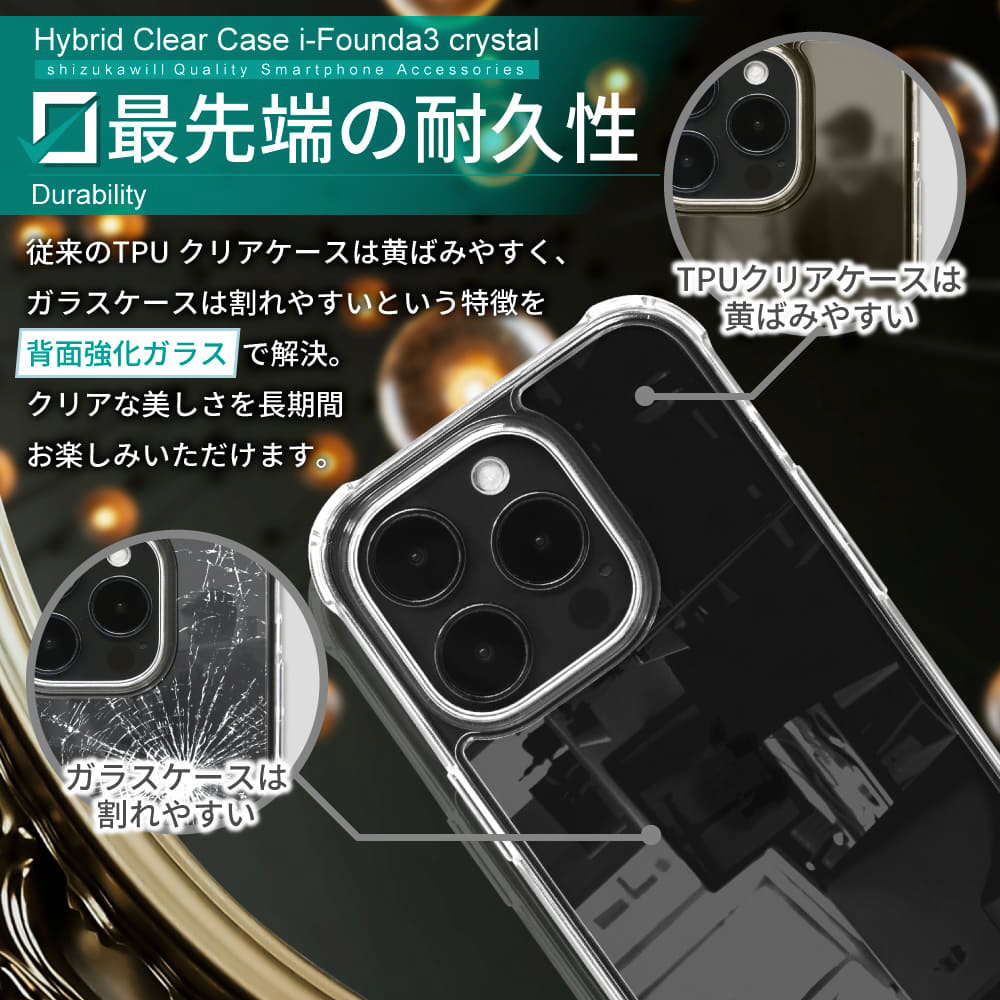 クリスタルのような輝き!衝撃を吸収・分散するTPU、背面に強化ガラスを使用したクリアケース