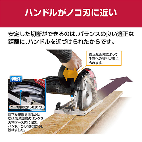 深切りタイプとキワ切りも出来る内装丸ノコです。