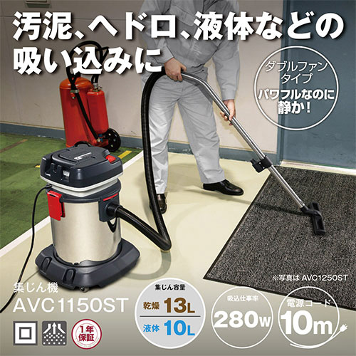 汚泥、ヘドロ、液体などの吸込みに最適で洗いやすくて錆びないステンレス製タンクを採用した機能的な集じん機です。
