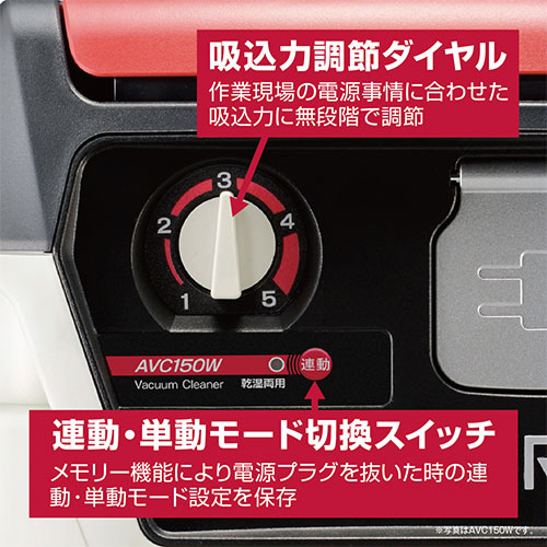 ■吸込力調節ダイヤルを採用しておりダイヤルを回して連動時に工具の消費電力に合った最適な吸込力に調節可能で単動時には状況に応じた静音作業が出来ます。