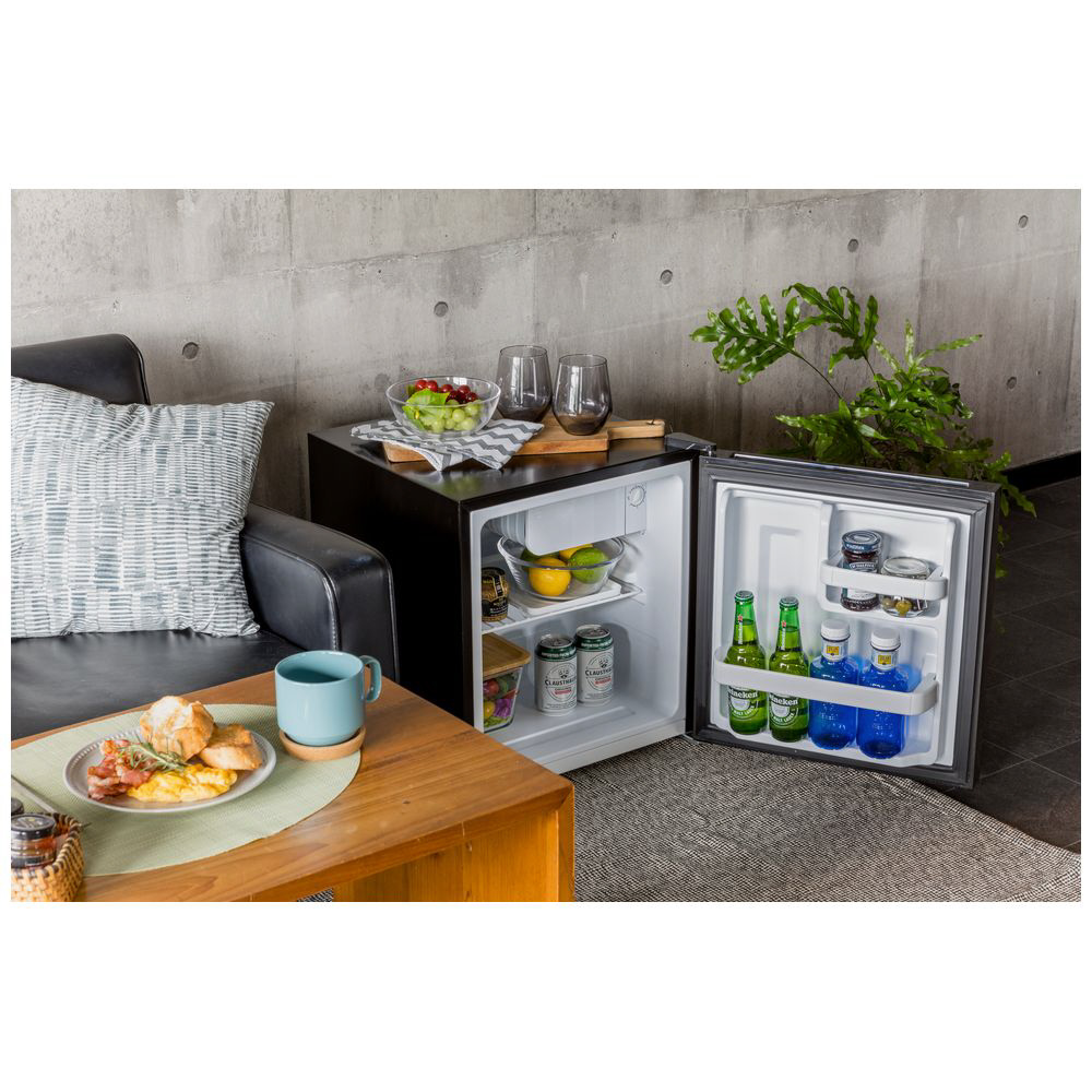 スタイリッシュなガラス面ドア。45L小型冷蔵庫。