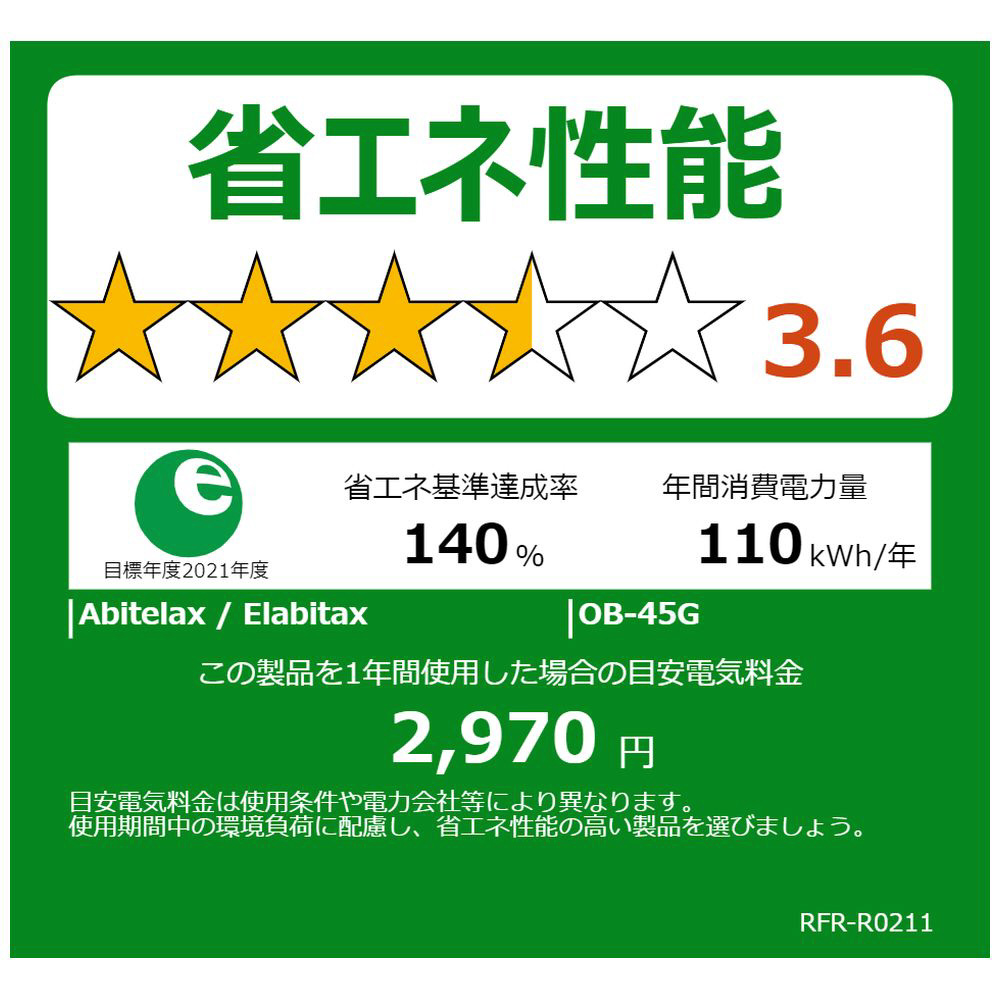 | 省エネ性能(目標年度2021) | ★★★☆☆ 3.6 |