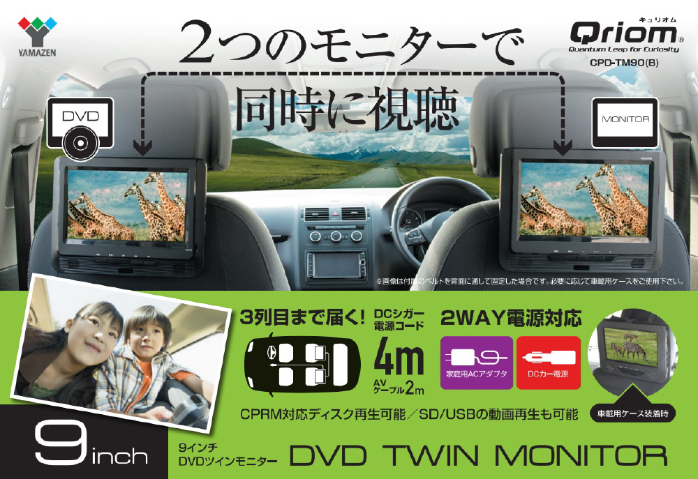 2つのモニターで同時に視聴可能な9インチDVDツインモニター。